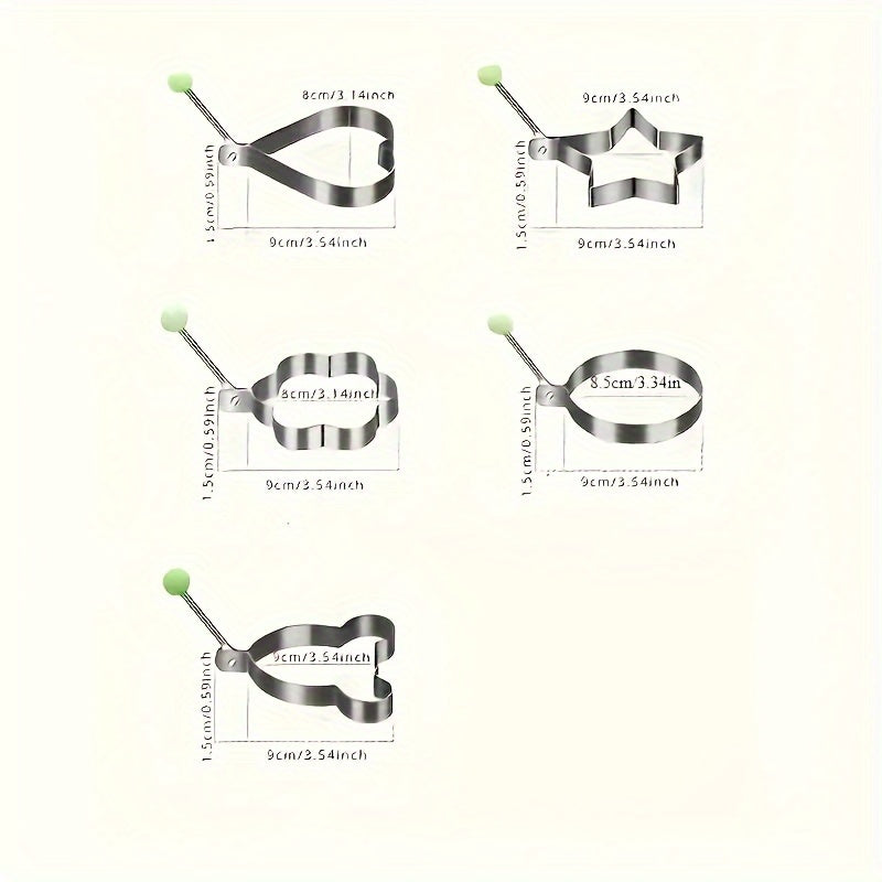 Set of 5 Non-Stick Stainless Steel Egg Molds Heart and Rice Ball Shapes for Breakfasts