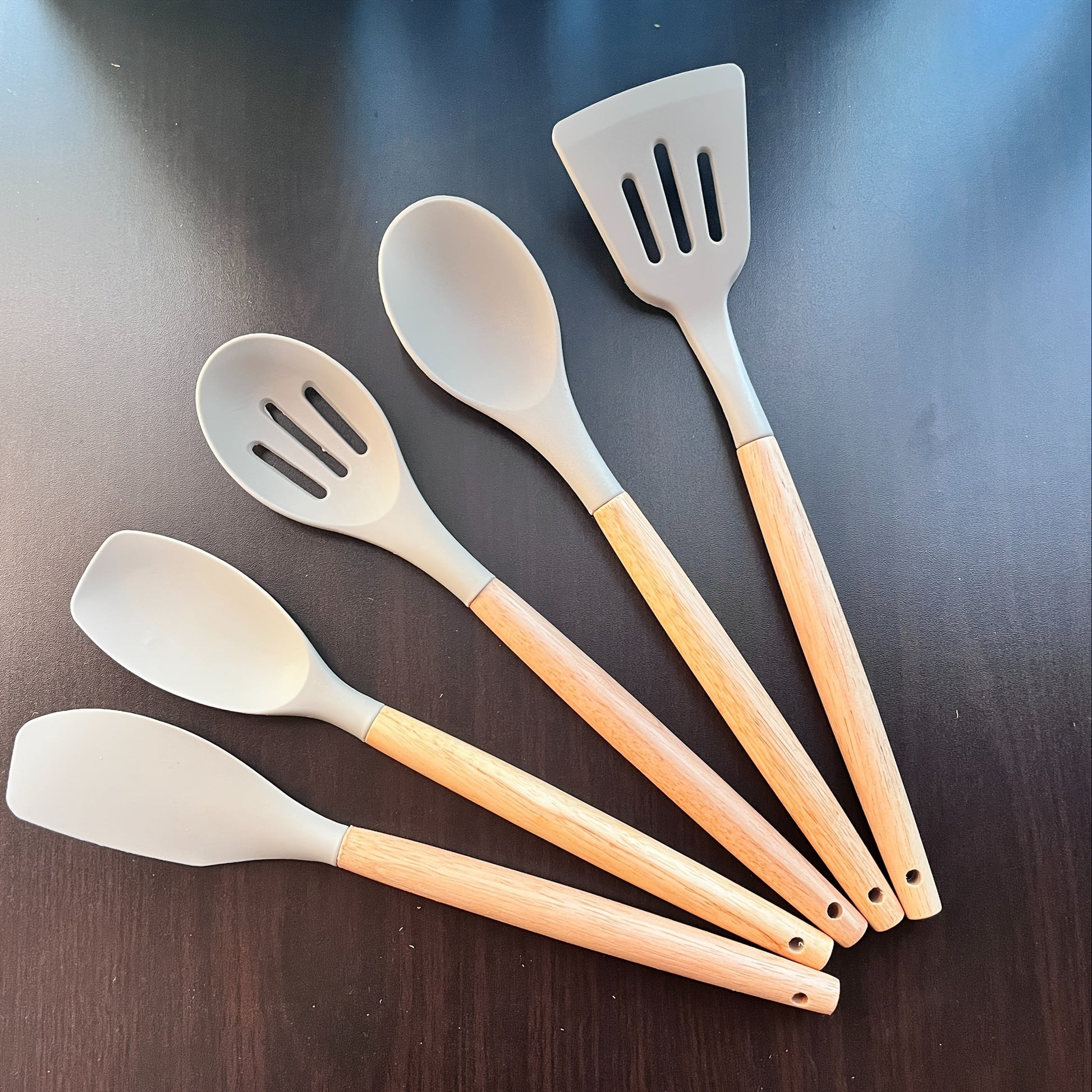 Set of 5 Non-Stick Kitchen Utensils with Wooden Handles for Frying and Cooking