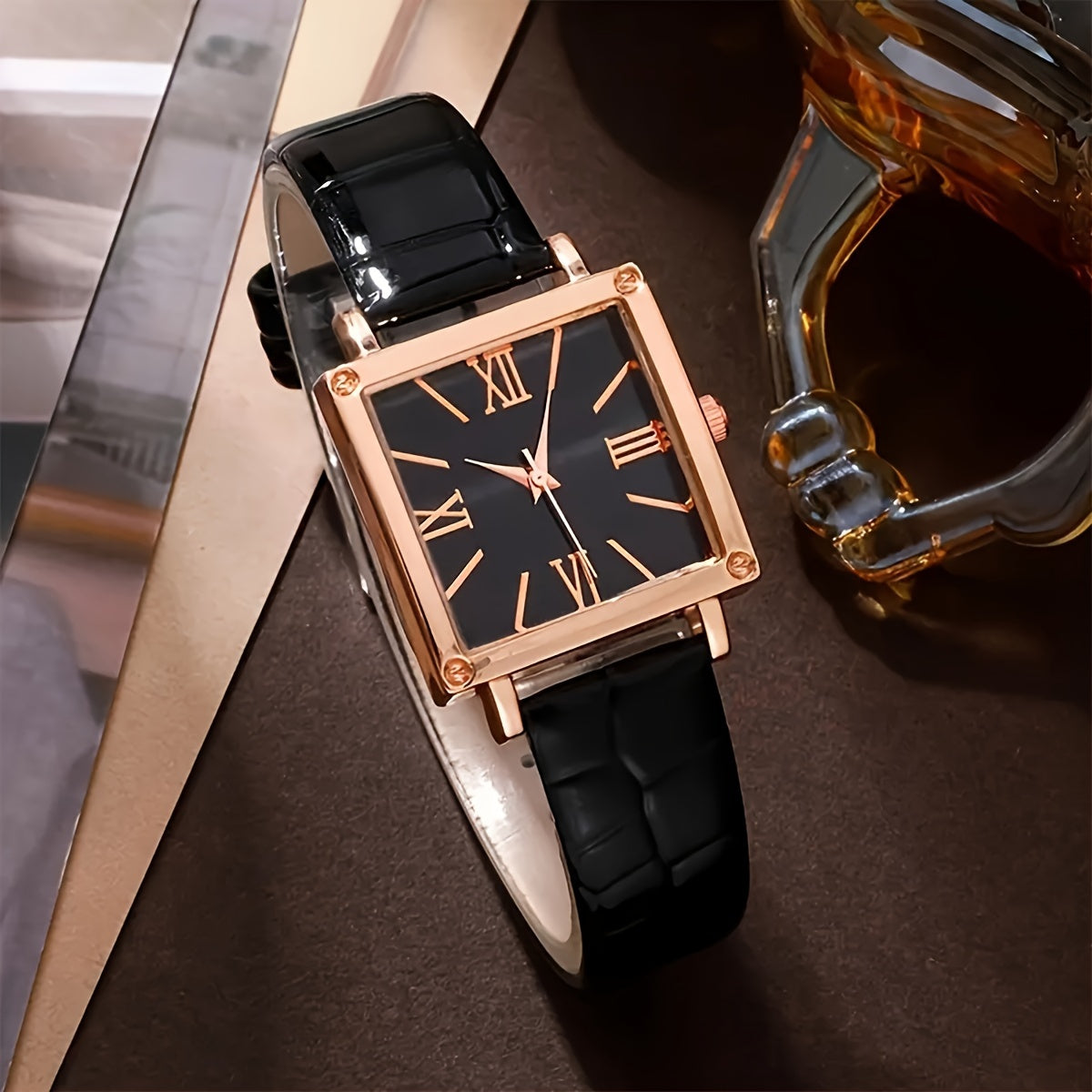 Set of 5 Women's Square Quartz Watches with Personalized Romantic Design and Matching Jewelry