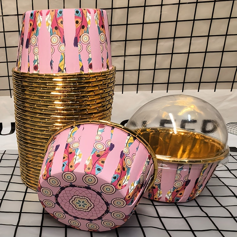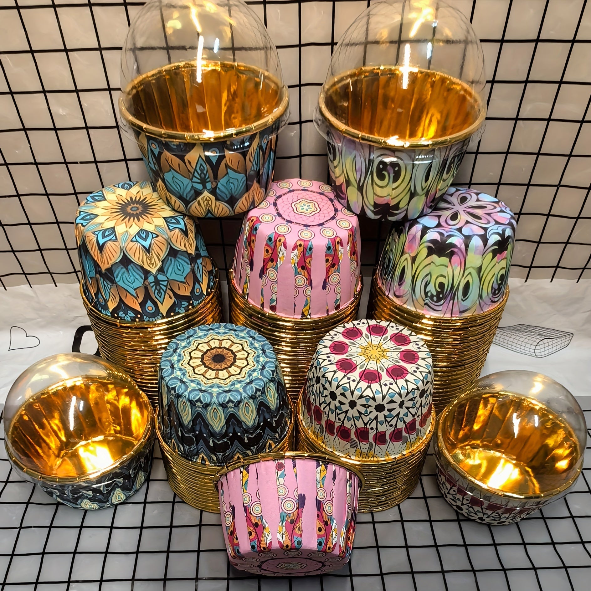 Set of 50 Disposable Paper Baking Cups, Assorted Holiday Themes, Heat-Resistant, Round Cupcake Liners