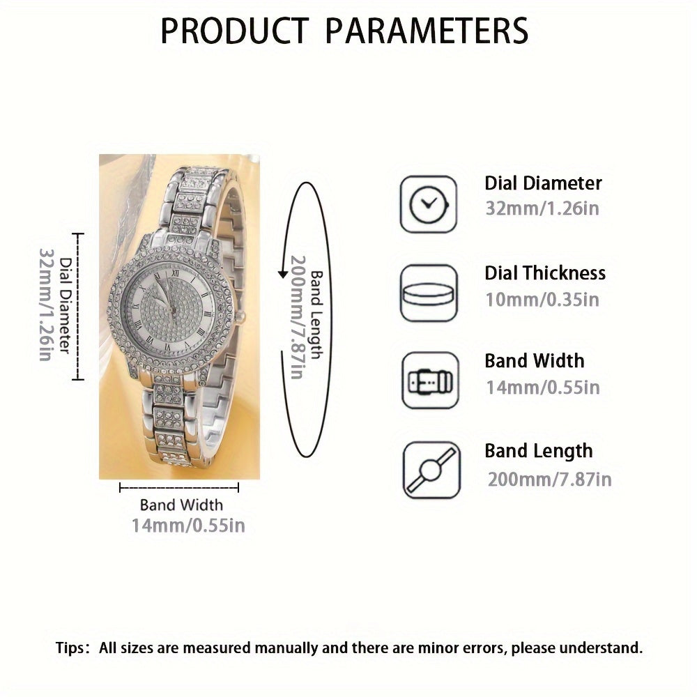 Set of 6 Women's Luxury Rhinestone Quartz Watches with Roman Dial and Heart Jewelry