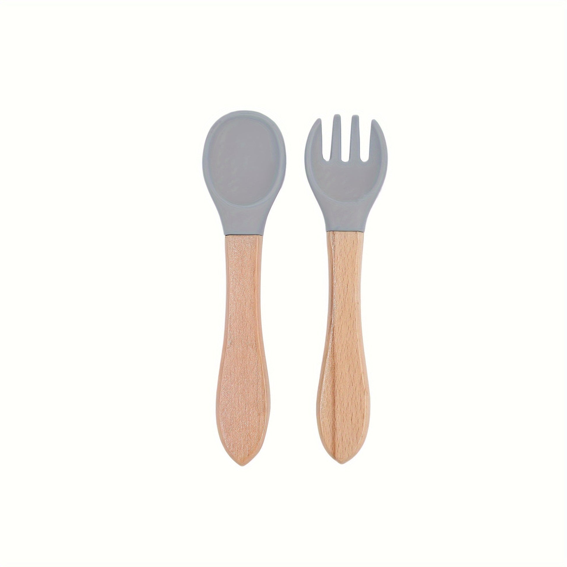 Baby Feeding Set Bamboo and Silicone Fork and Spork for Toddler Self-Feeding