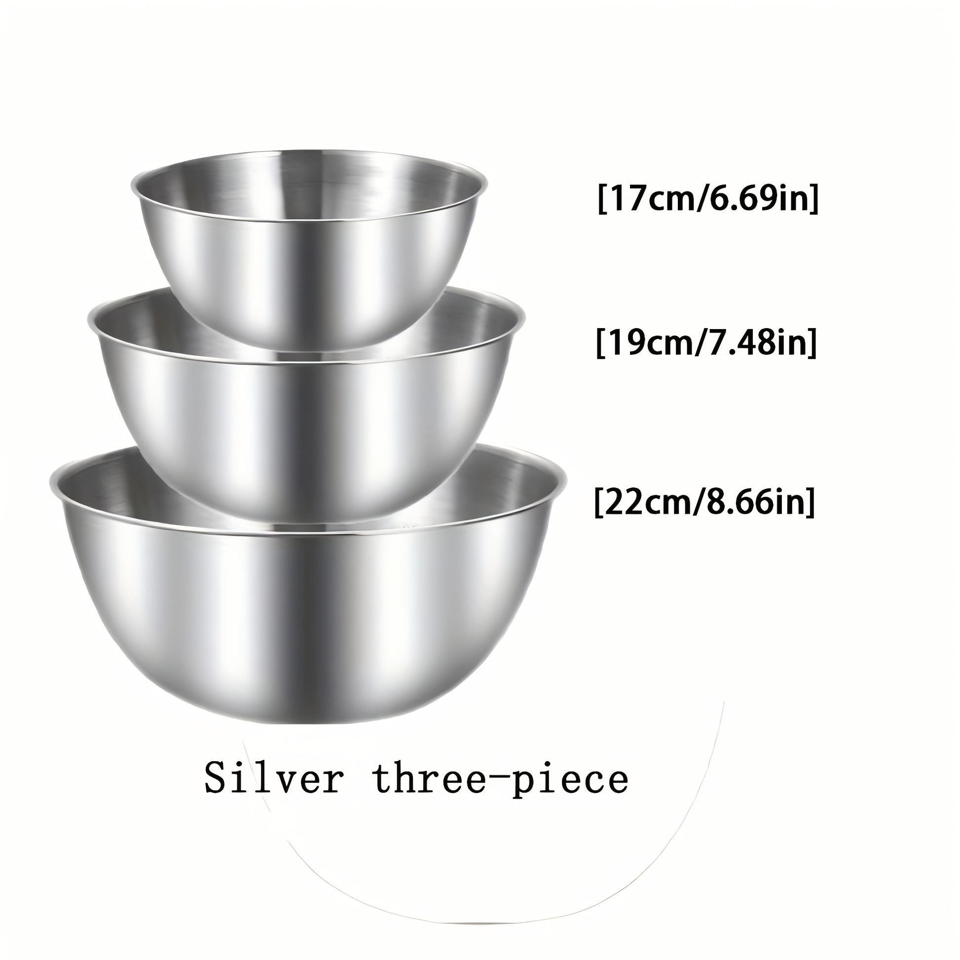 Set of 3 Stainless Steel Mixing Bowls Kitchen Food Prep Durable Durable