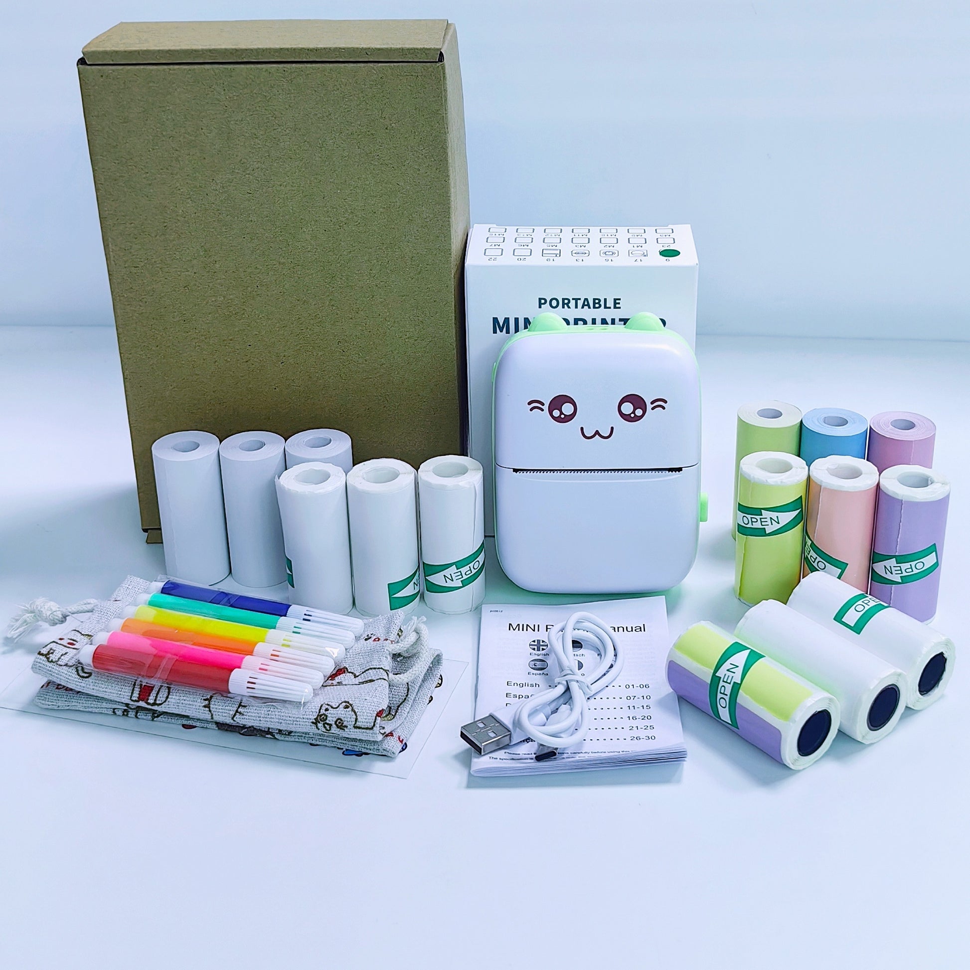 Mini Portable Thermal Wireless Printer with 3 Rolls of Thermal, Self-Adhesive, Colored, and Label Paper