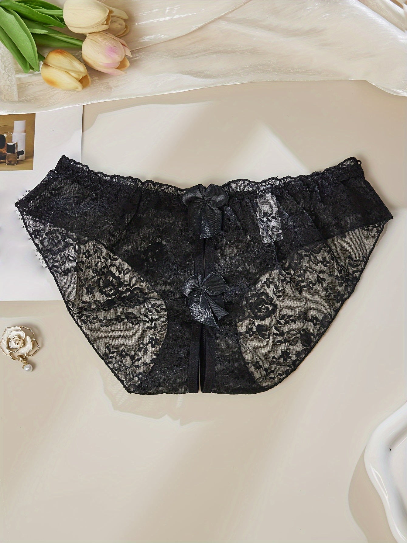 Women's Lace Open-Crotch Underwear with Bowknot, Sexy Nightwear