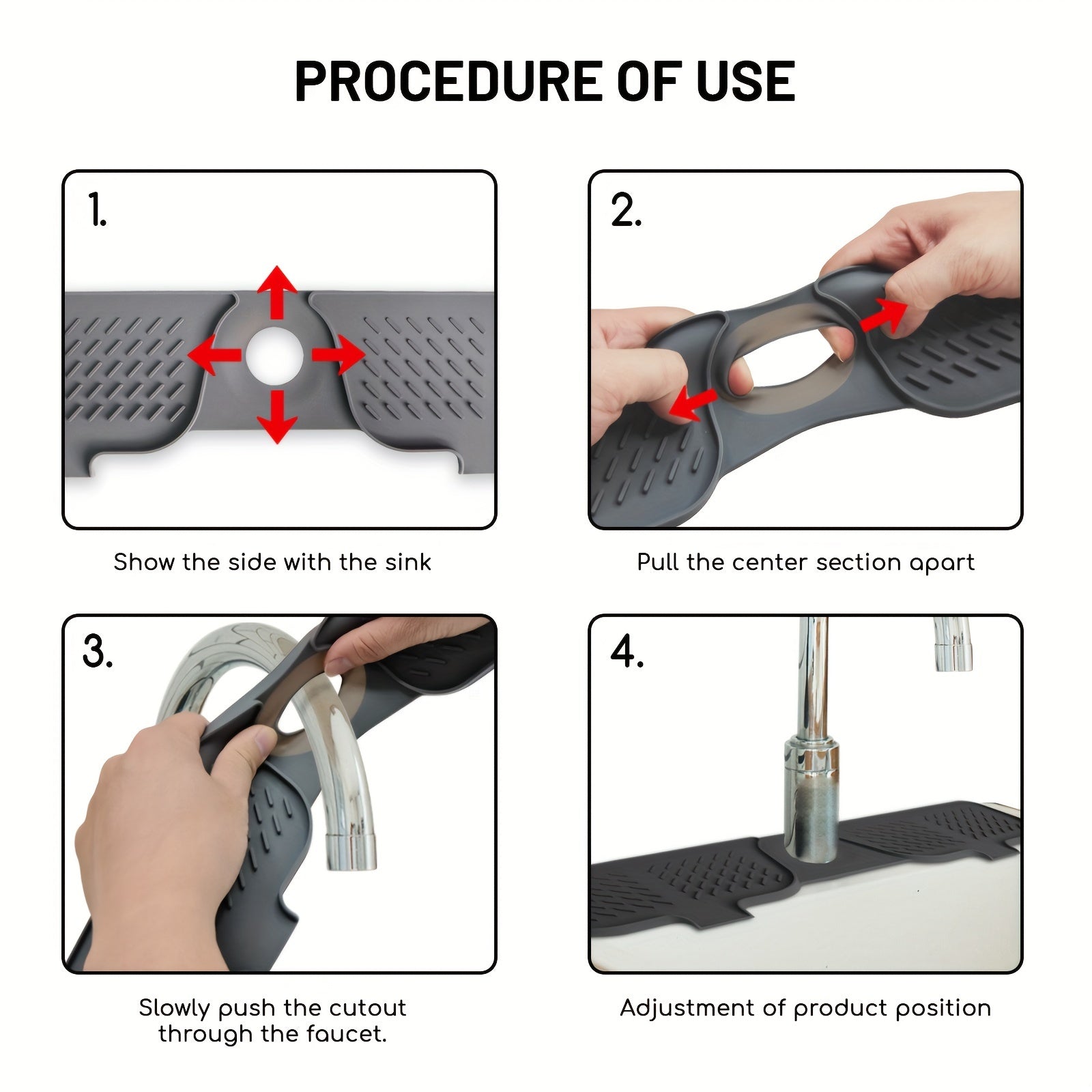 Silicone Sink Accessories Set Including Splash Pad Faucet Pad Drain Pad and Handle Drip Tray for Kitchen and Bathroom