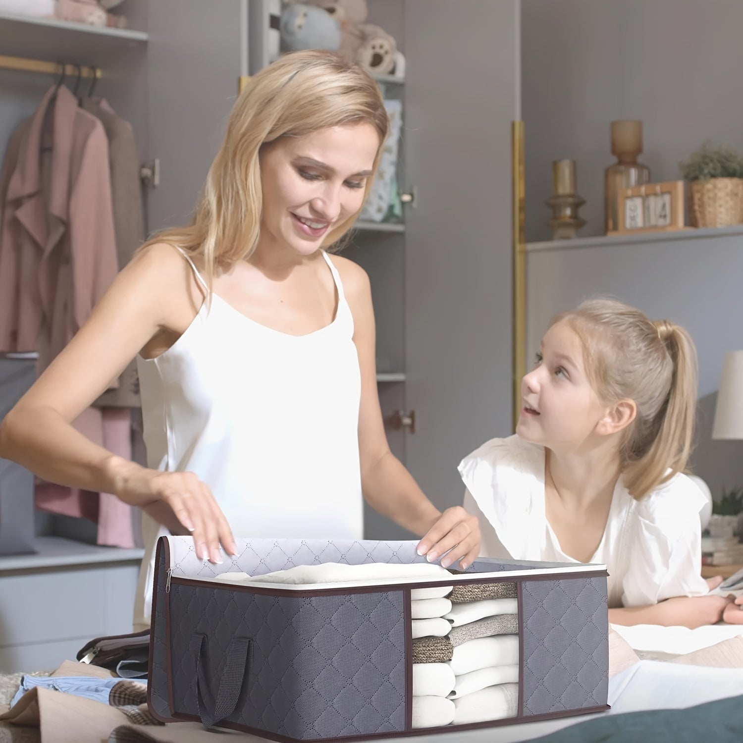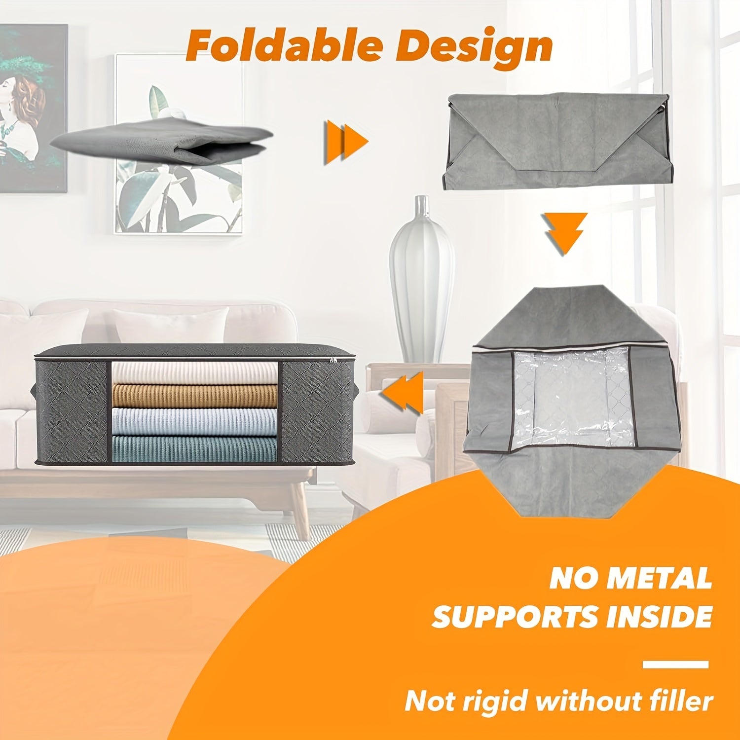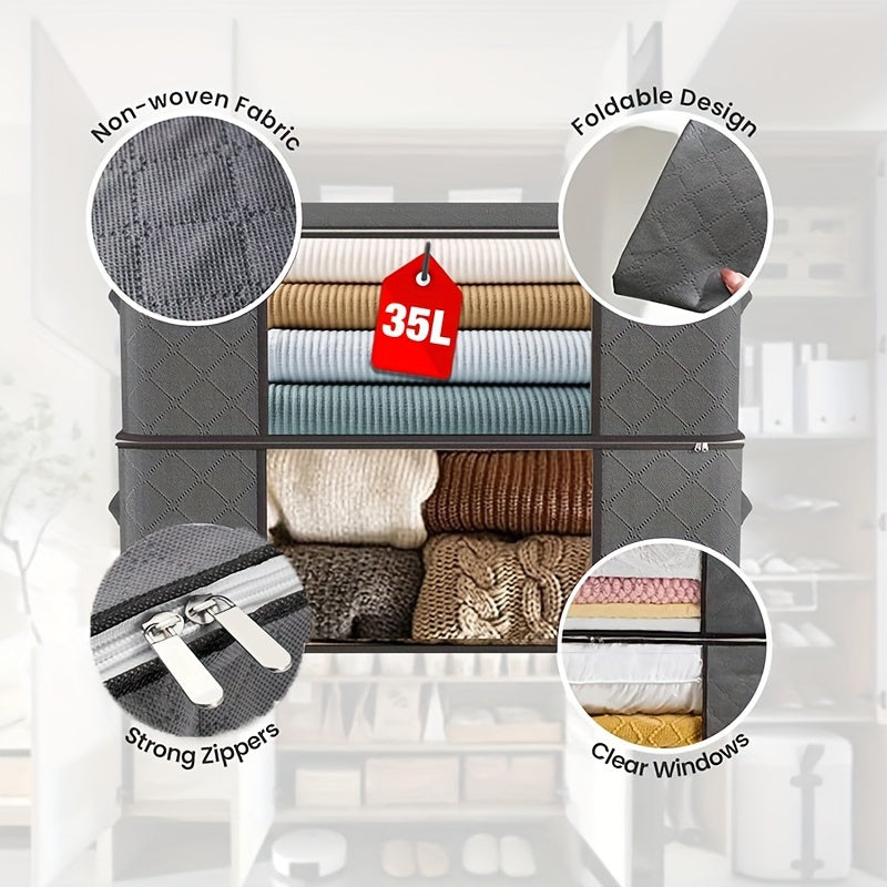 Set of 6 Fabric Under-Bed Storage Bags Waterproof Flip Top Reinforced Handle for Clothing Linens
