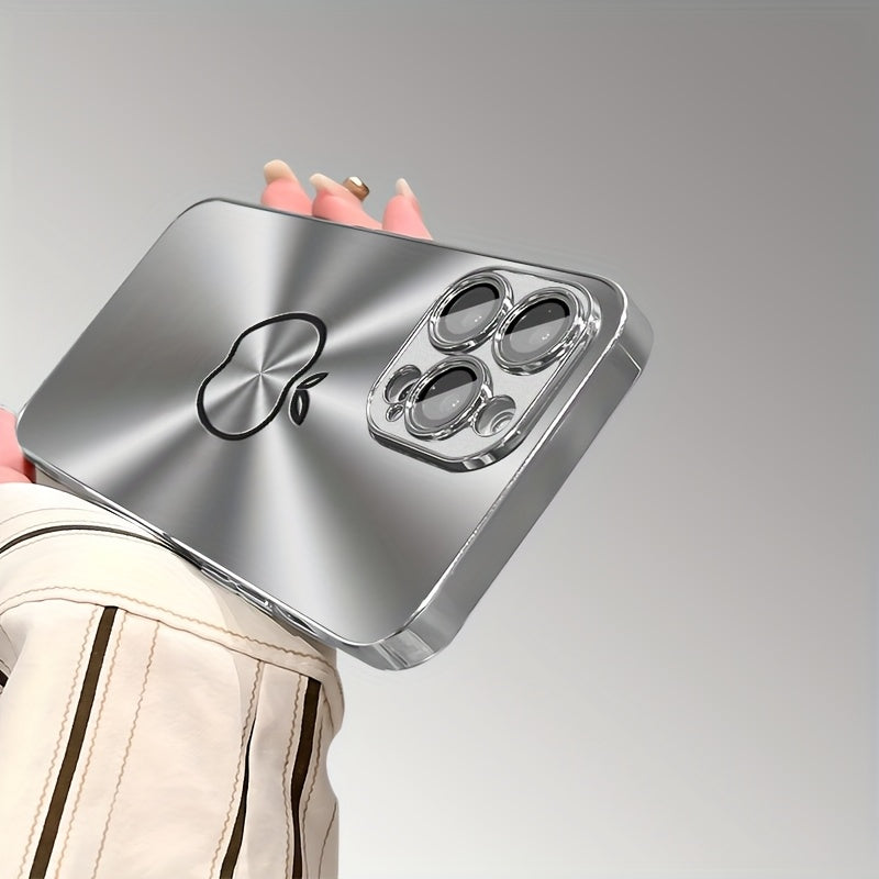 Silver Metal Texture Line Pattern Glass Phone Case with Lens Protection for iPhone