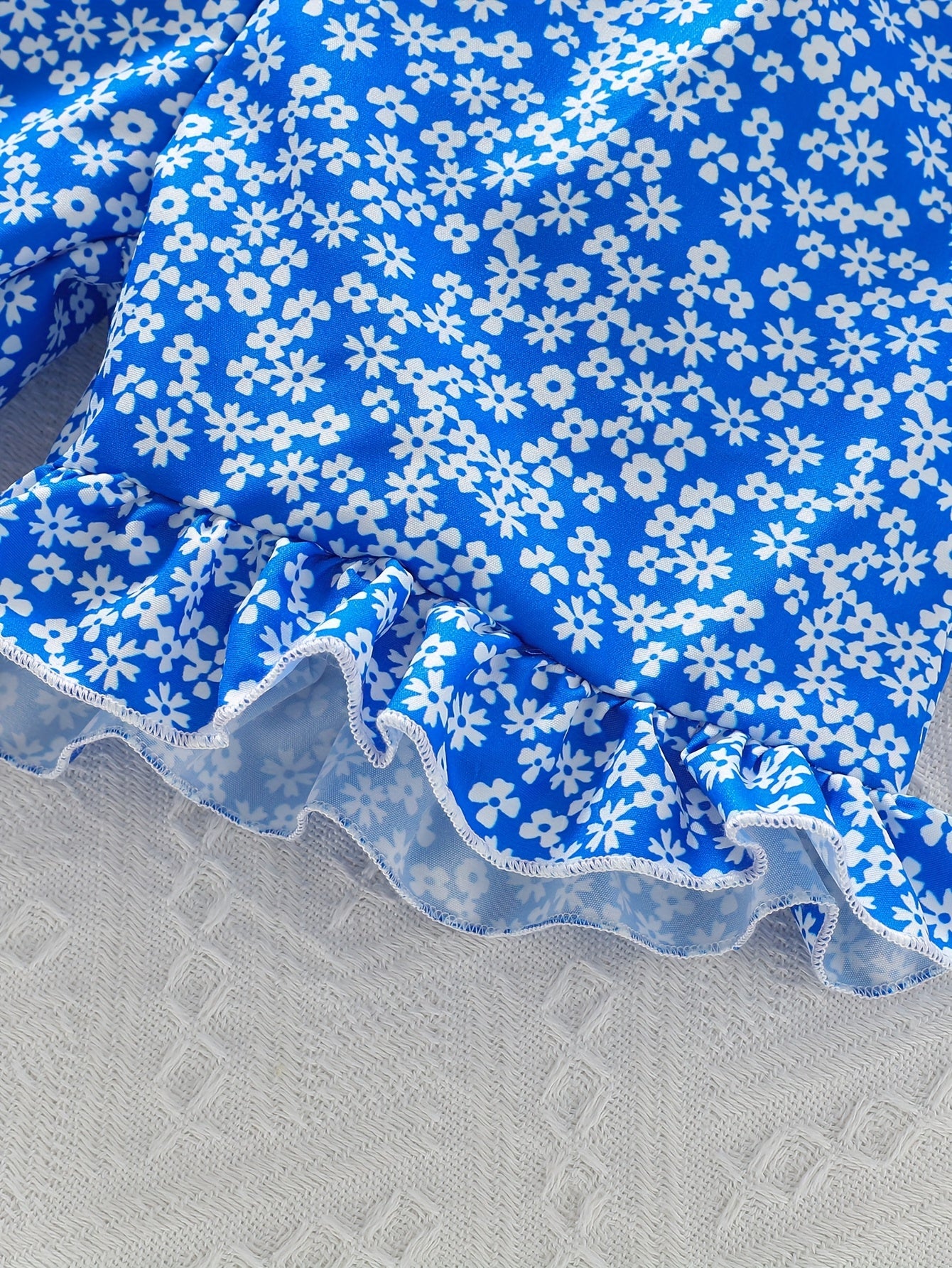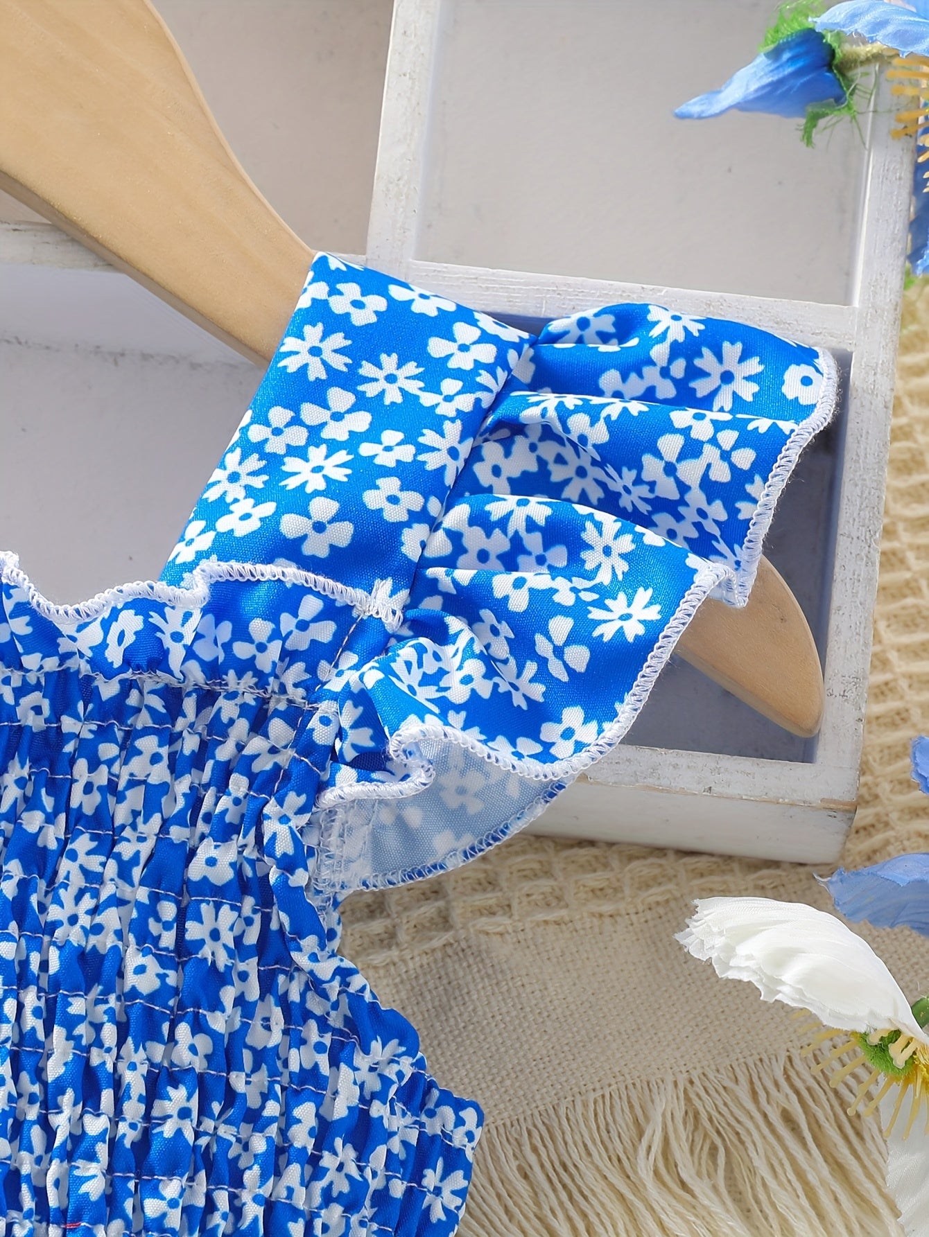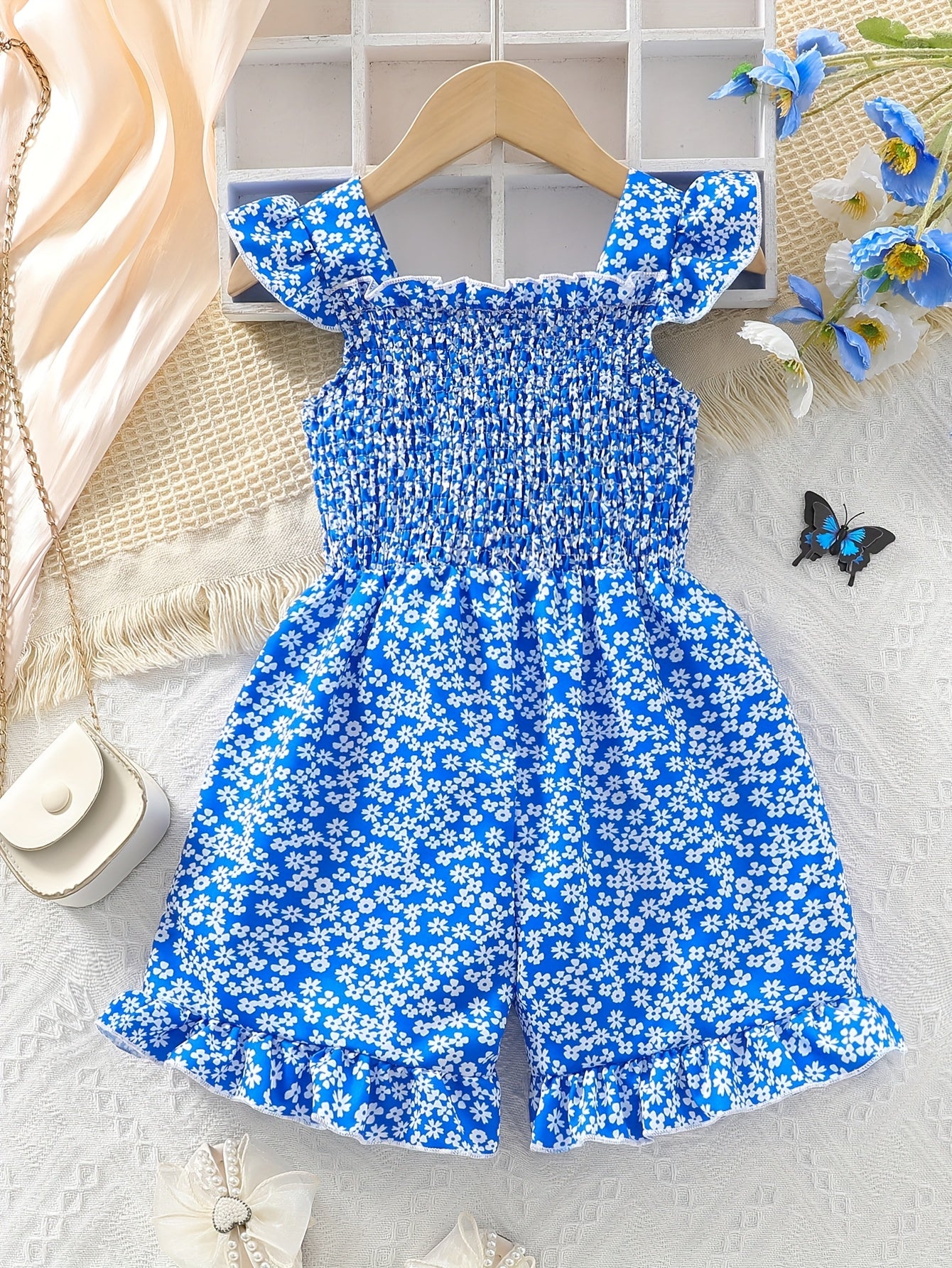 Girls Sleeveless Floral Jumpsuit with Ruffle and Bow for Summer Parties