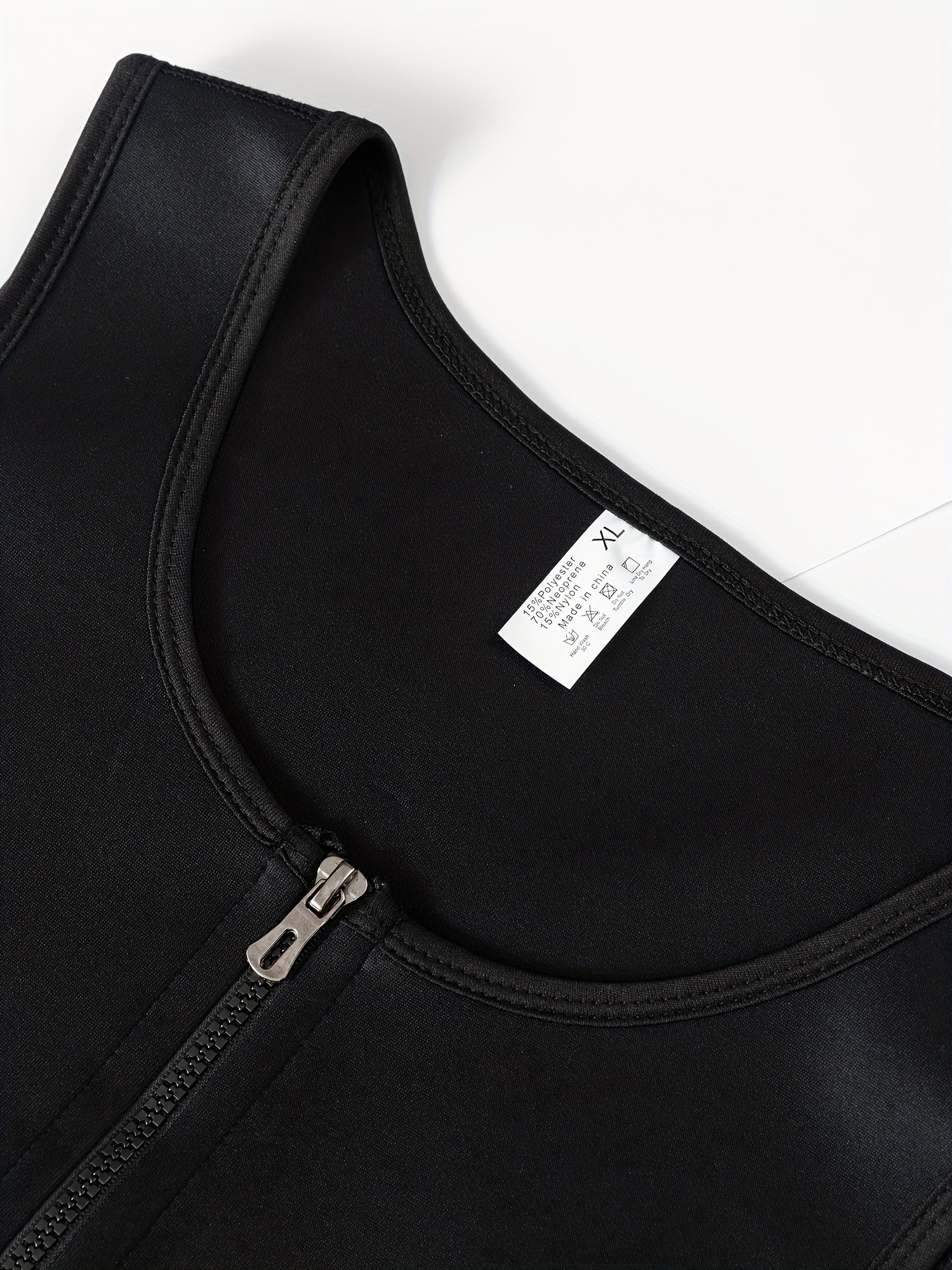 Men's Sleeveless Workout Tank Top with Zip-Up Design and Waist Trainer for Running and Fitness