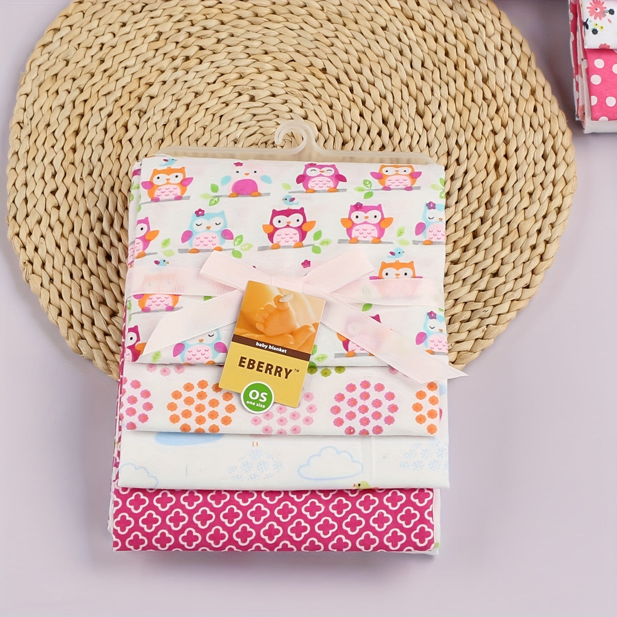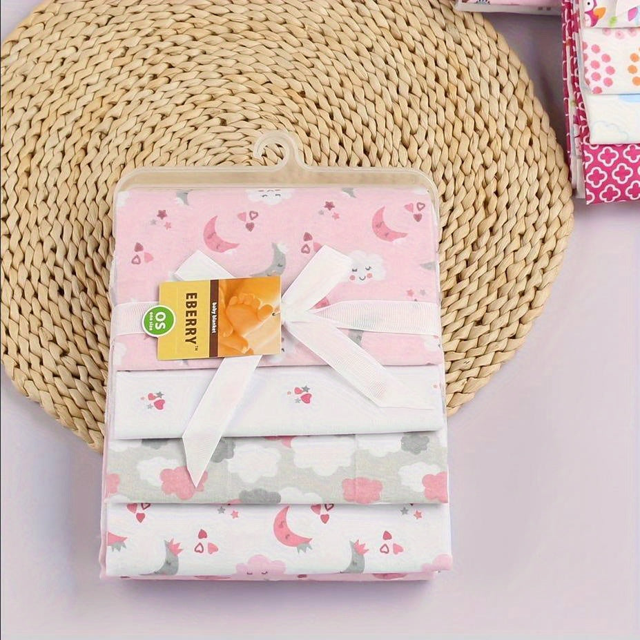 Baby Cotton Blankets Set of 4 for Newborns and Infants Soft Cartoon Prints Gift for Baby Shower Christmas Thanksgiving Valentine