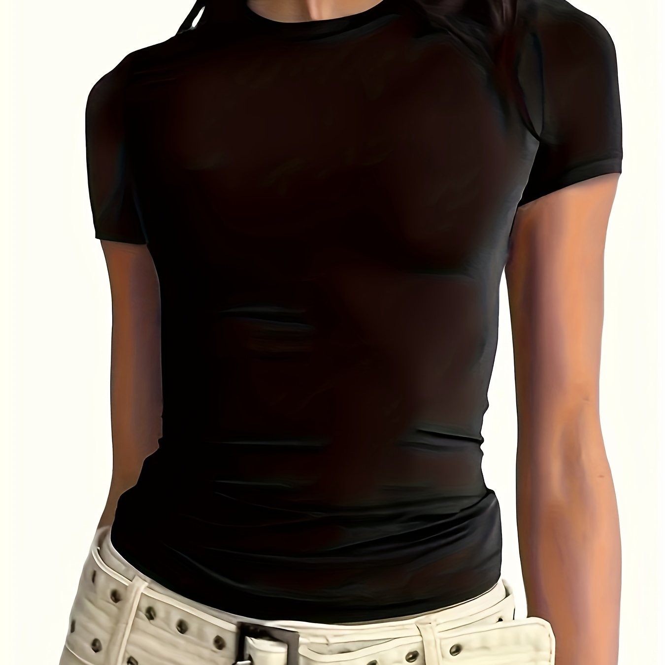 Women's Solid Color Crew Neck T-Shirt Polyester Casual Short Sleeve Spring Summer