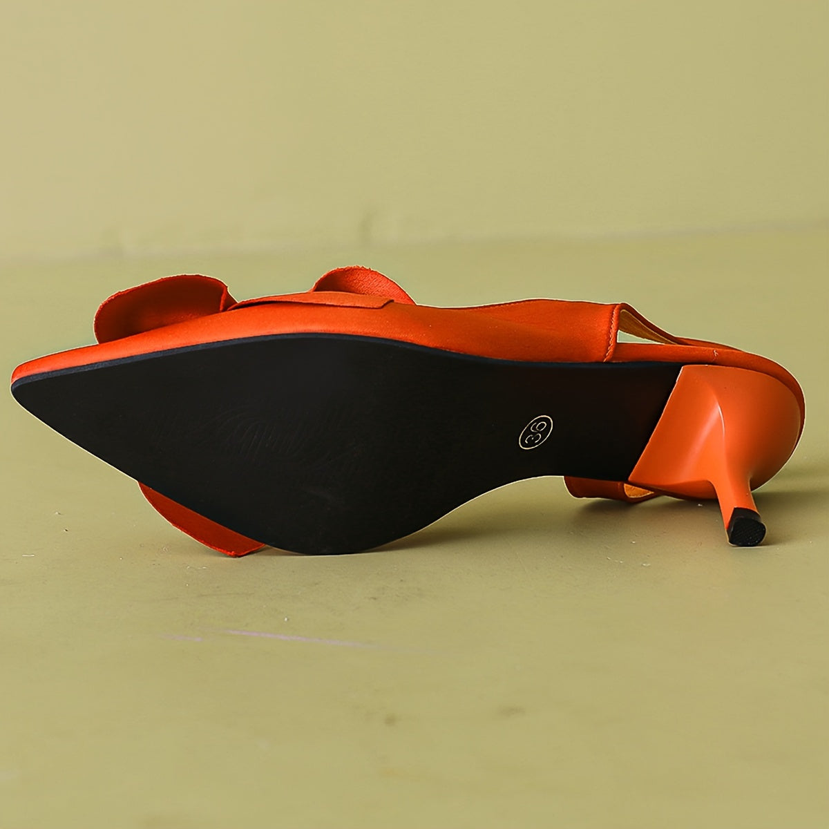 Women's Elegant Solid Color High Heel Sandals with Elastic Ankle Strap and Bowknot