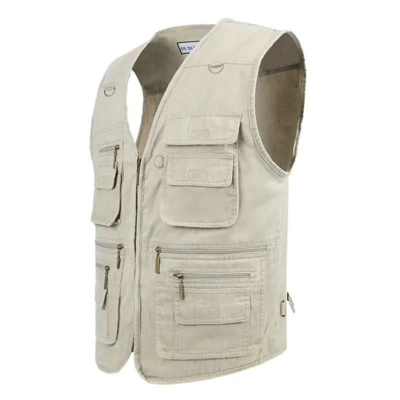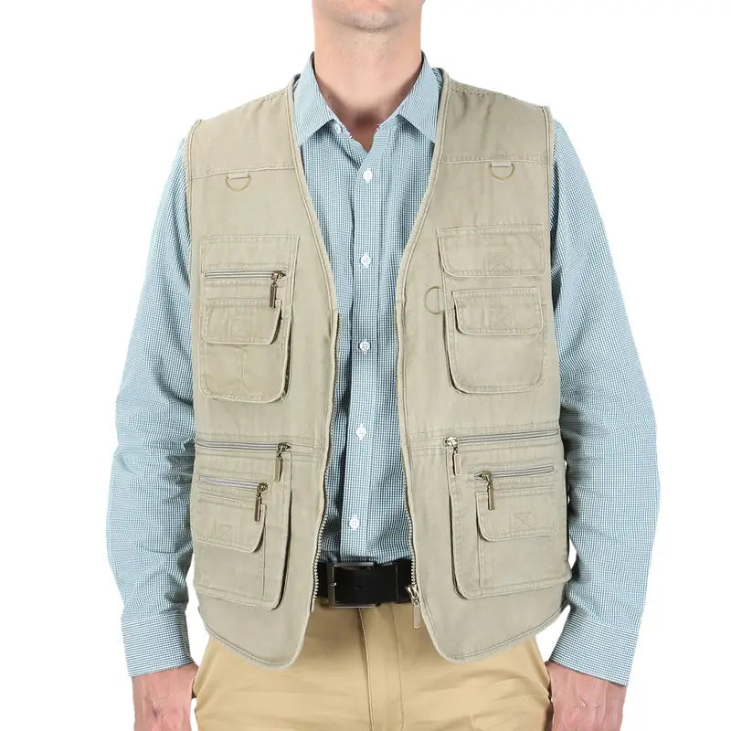 Men's Sleeveless Zip-Up Vest Jacket with Multiple Pockets for Outdoor Work and Activities