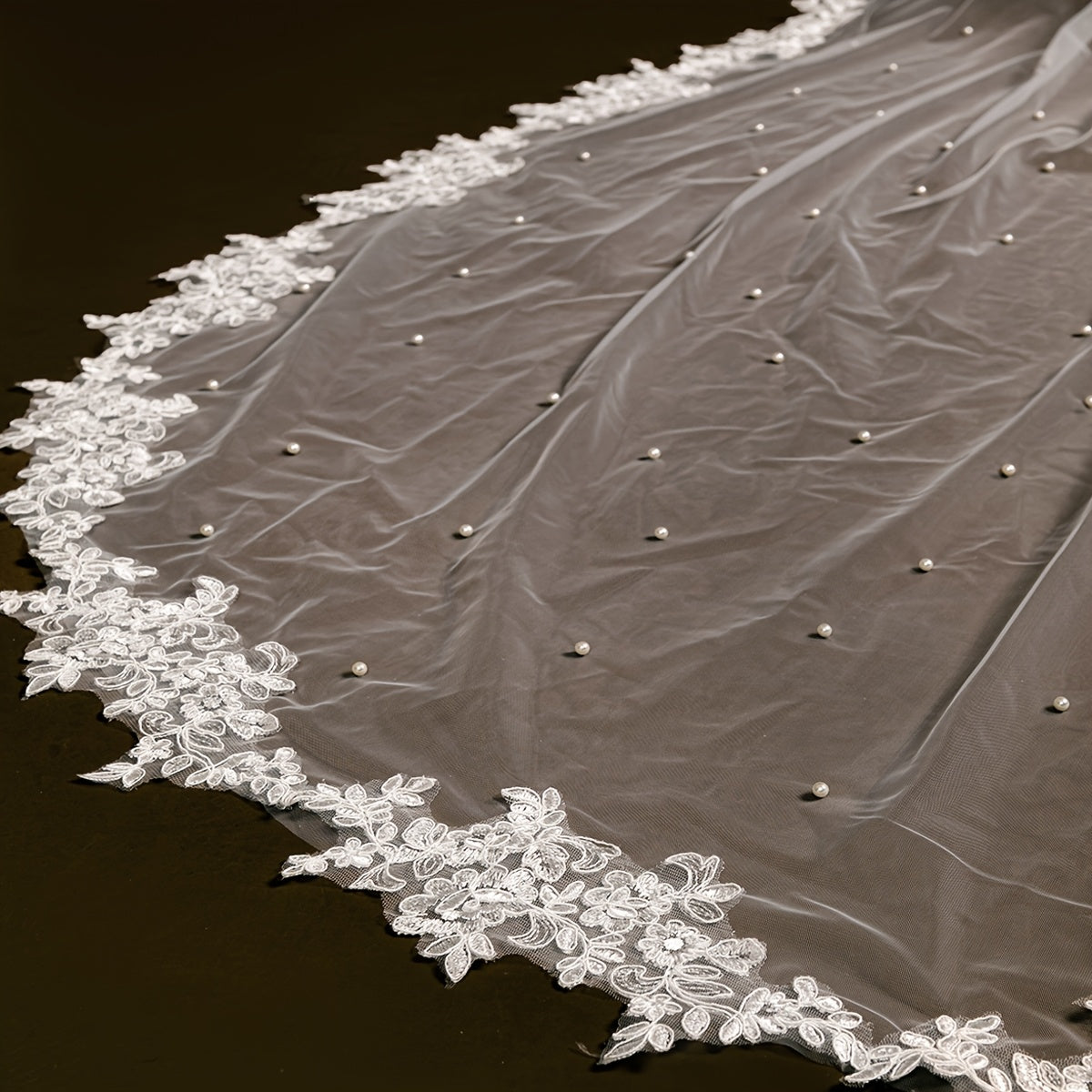Handcrafted Bridal Wedding Veil with Beading and Lace Trim for Weddings
