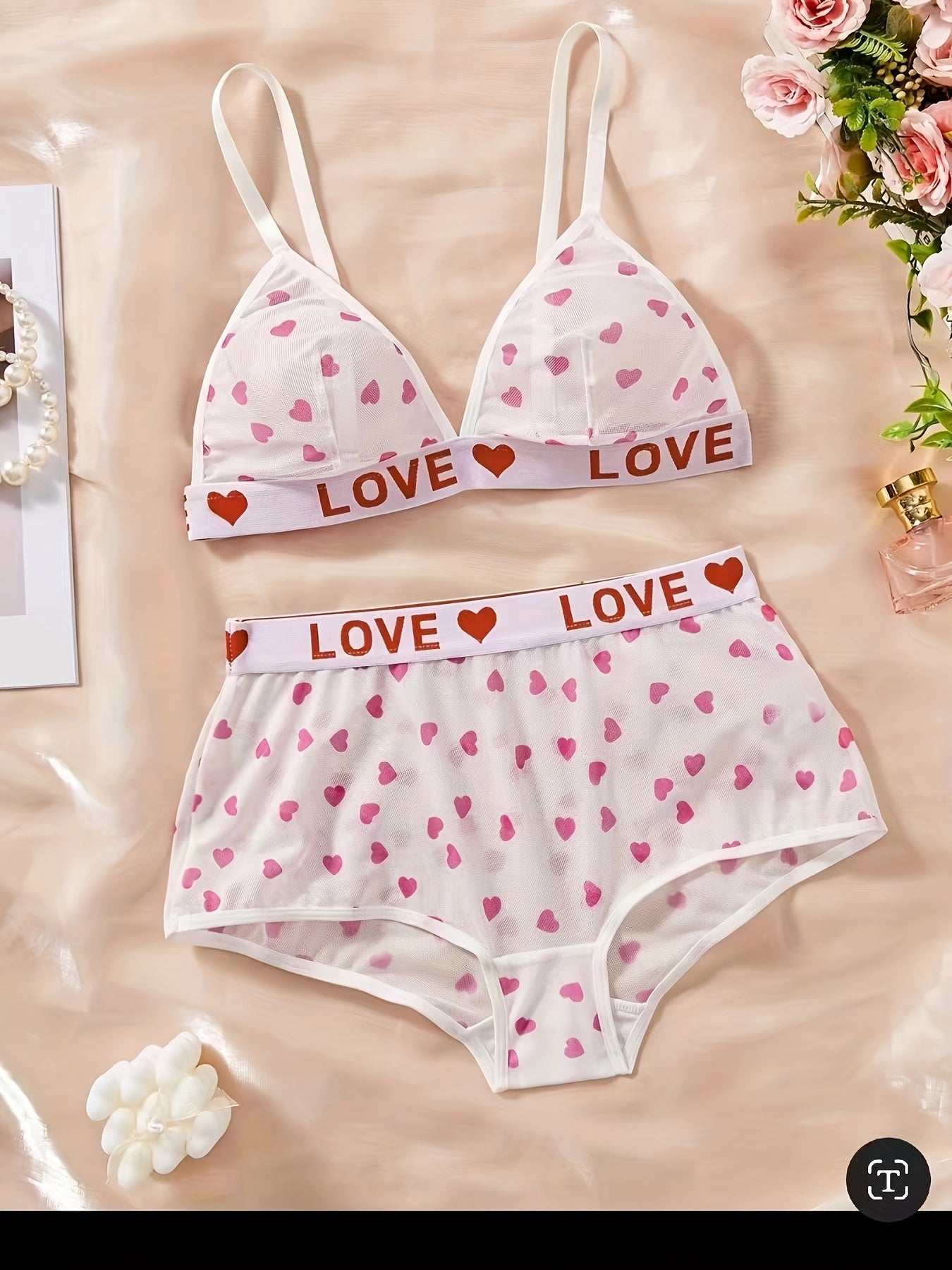 Women's Spaghetti Strap Heart Letter Lingerie Set Sexy Intimates