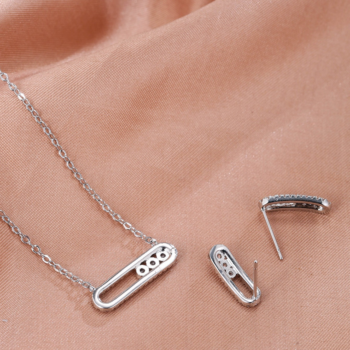 Sparkling Zirconia Jewelry Set Pendant Necklace and Dangle Earrings Paperclip Design for Valentine's Day