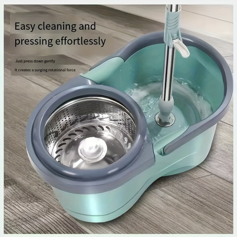 Spin Mop and Bucket Set with Microfiber Pads, 360° Swivel Head, Adjustable Handle for Household Cleaning