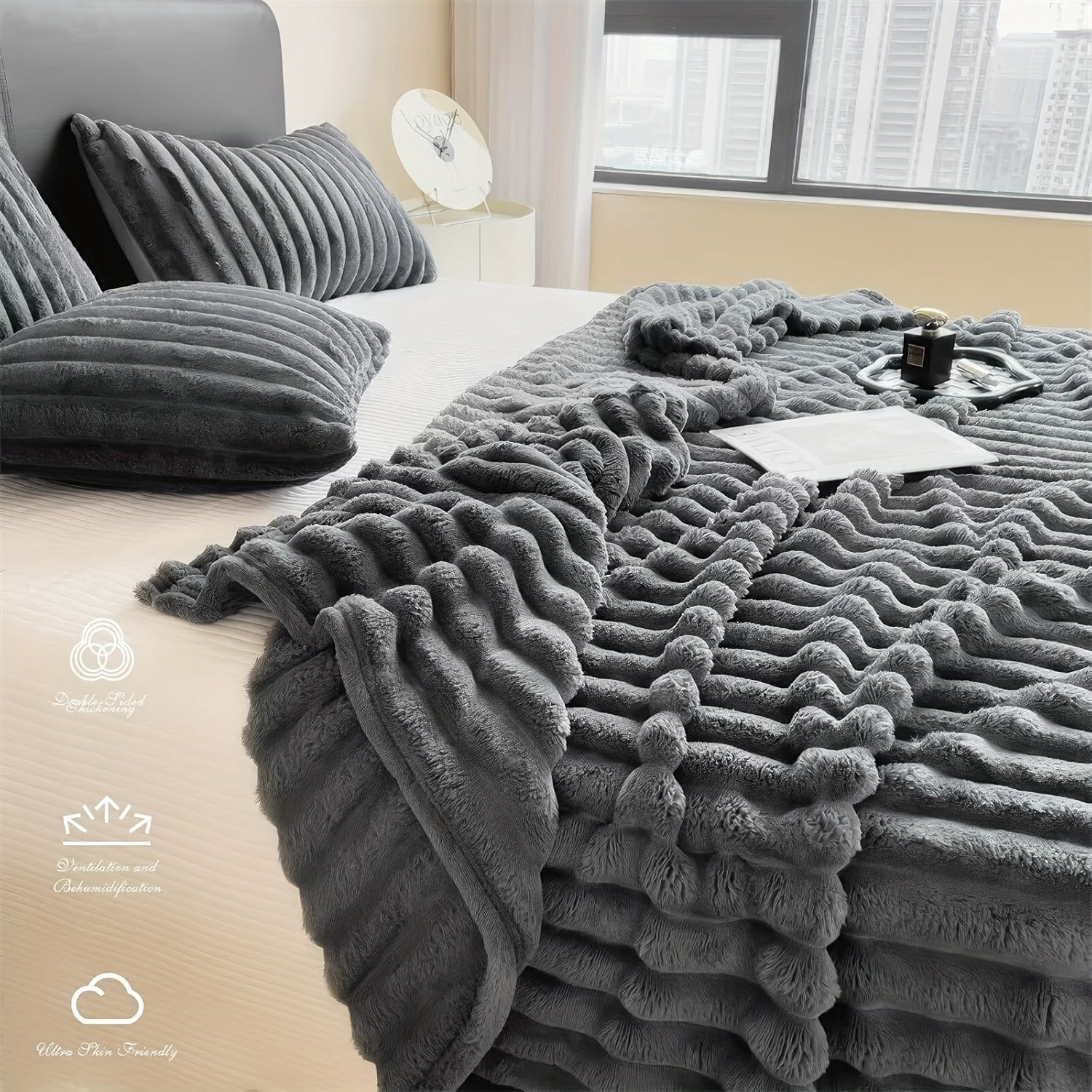 Reversible Faux Fur Throw Blanket Soft Warm Cozy Home Decor Bed Couch 50x60 Inches