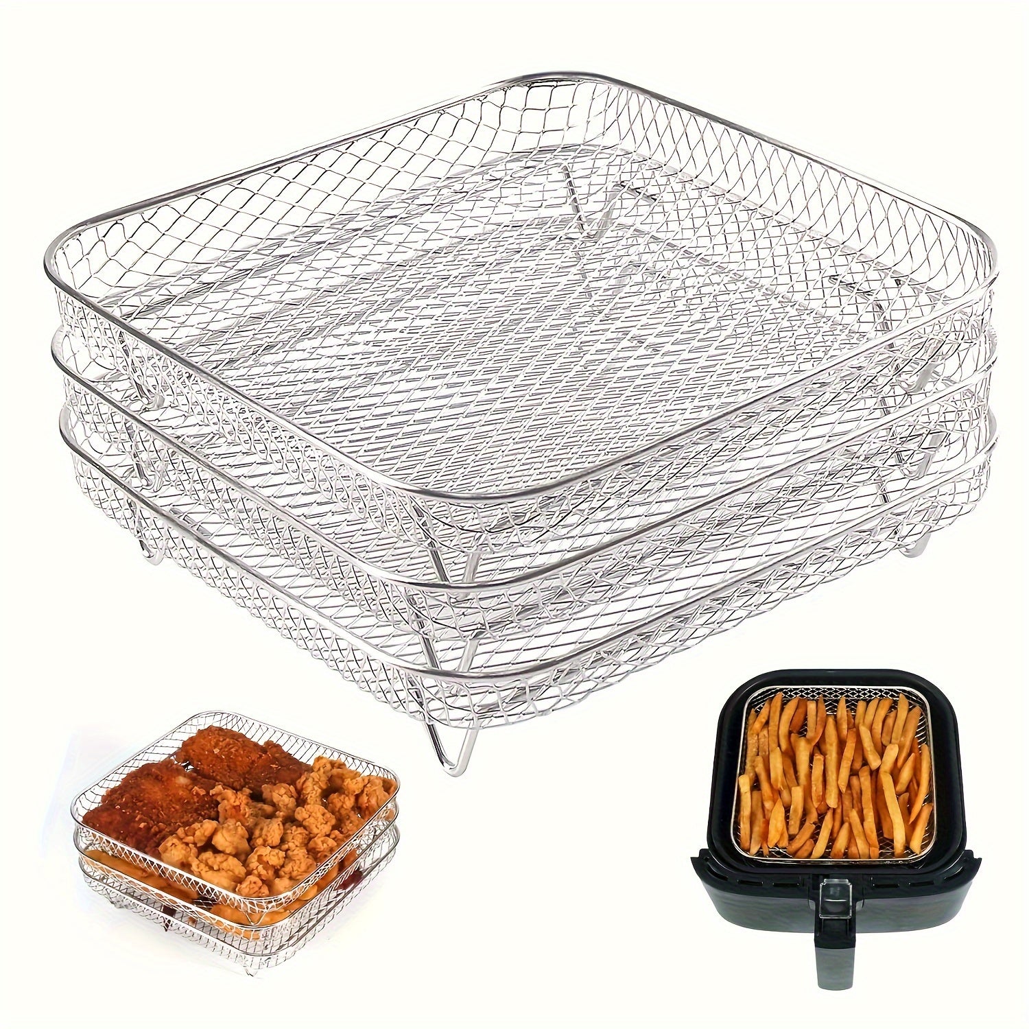 Stainless Steel Air Fryer Rack Set of 3 Multi-Layer Dehydrator Kitchen Accessories
