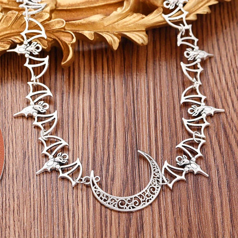 Stainless Steel Crescent Moon Bat Choker Necklace Punk Style for Women