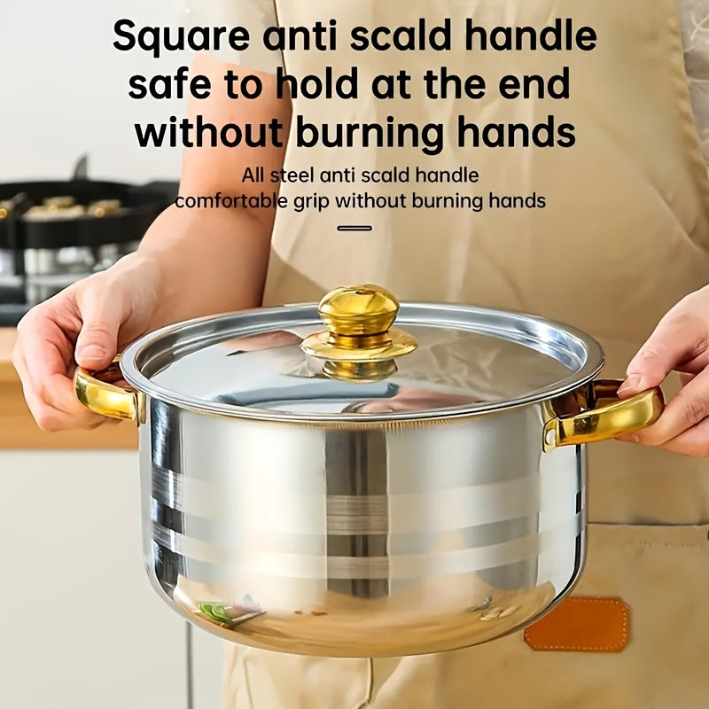 Stainless Steel Cookware Set 10 Pieces with 5 Pots and Lids for Soup Hot Pot Noodles