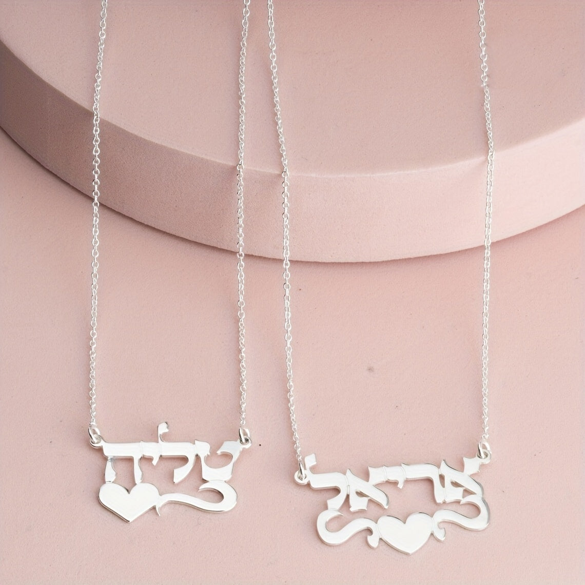 Stainless Steel Hebrew Name Necklace with Love Ribbon Pendant Jewelry