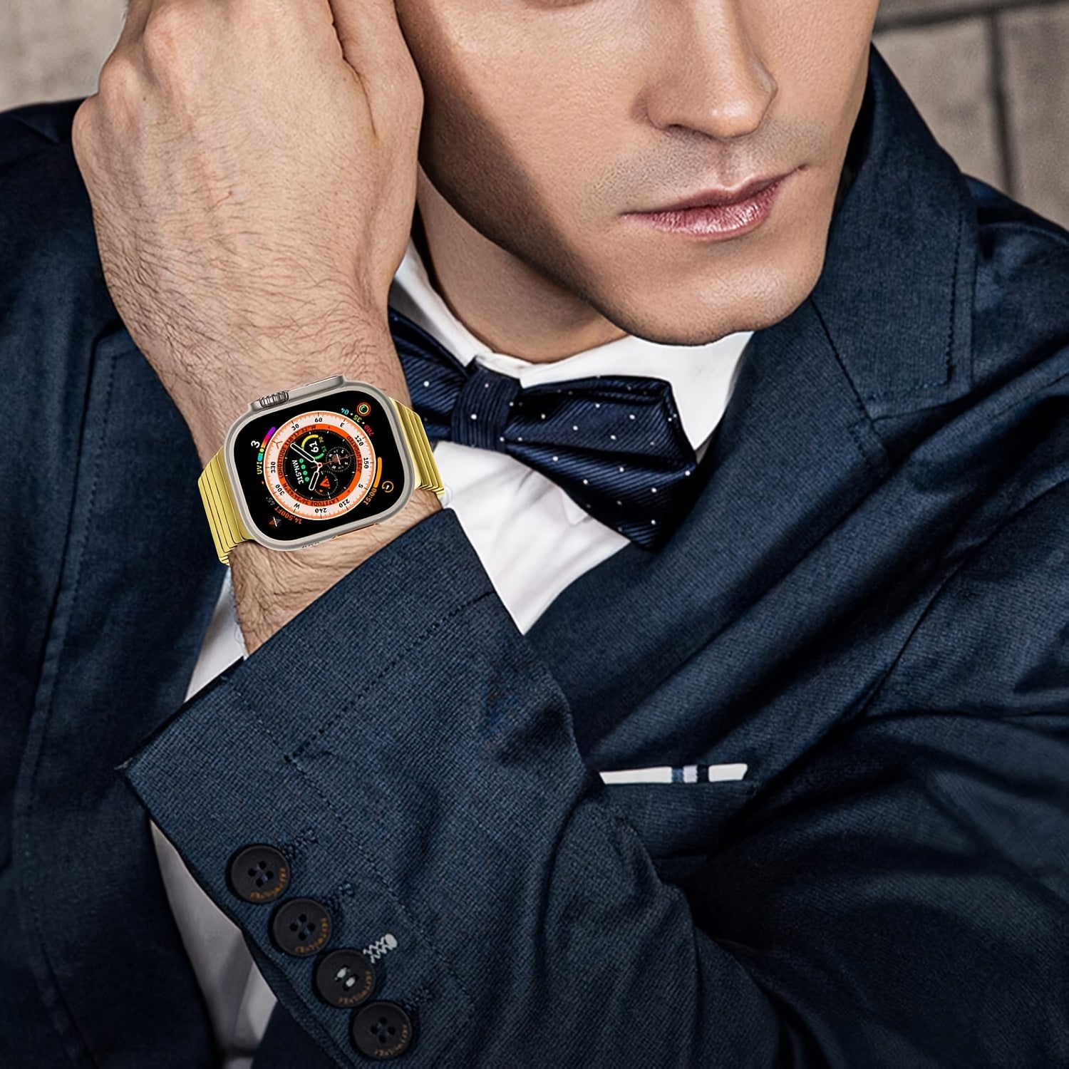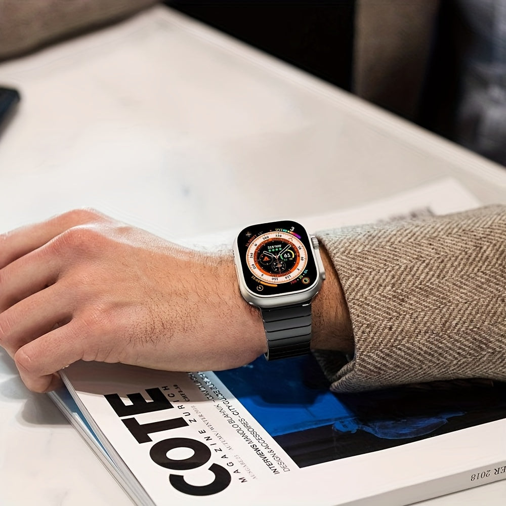 Men's Stainless Steel Watch Band for Apple Watch Series 1-9 and SE Ultra 40mm-49mm Metal Bow Buckle Strap