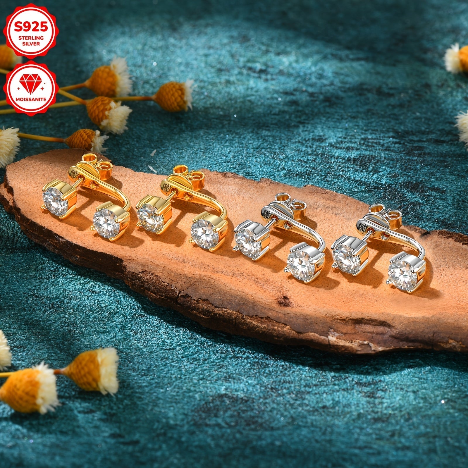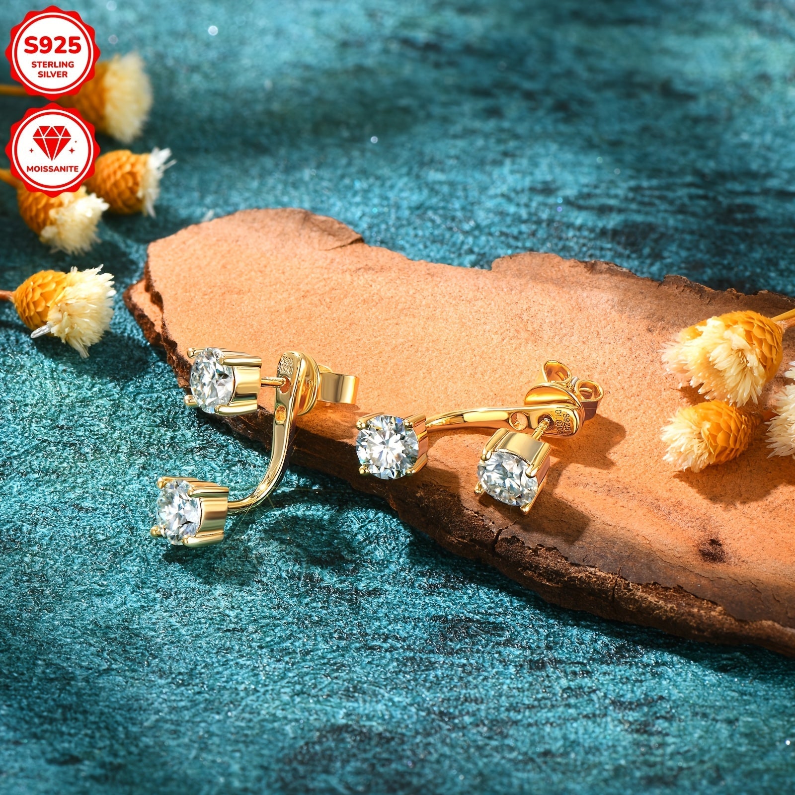Sterling Silver Moissanite Drop Earrings with Gold Plating 4mm 2.0ct Synthetic Gift