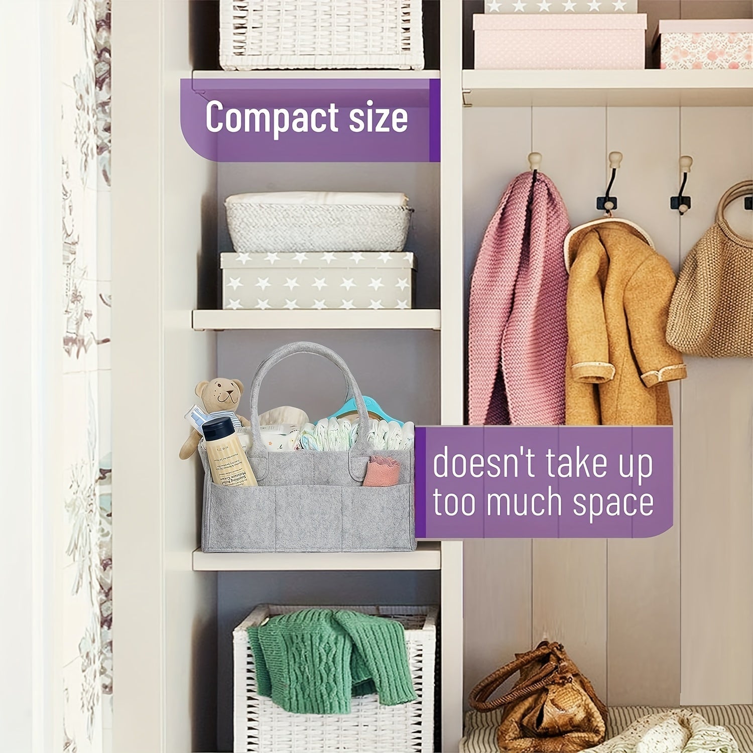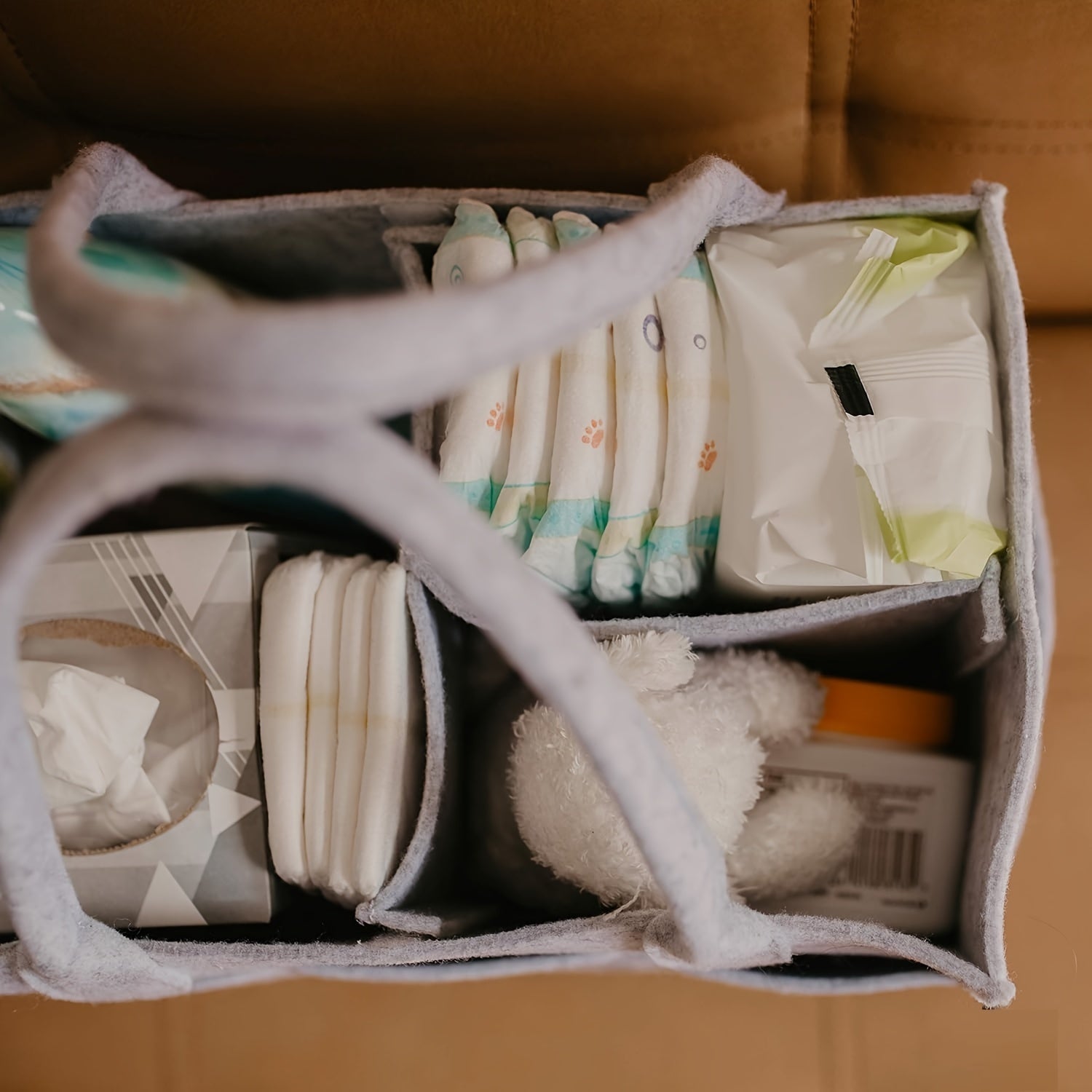 Light Gray Felt Diaper Wipes and Changing Items Storage Bag with Handles