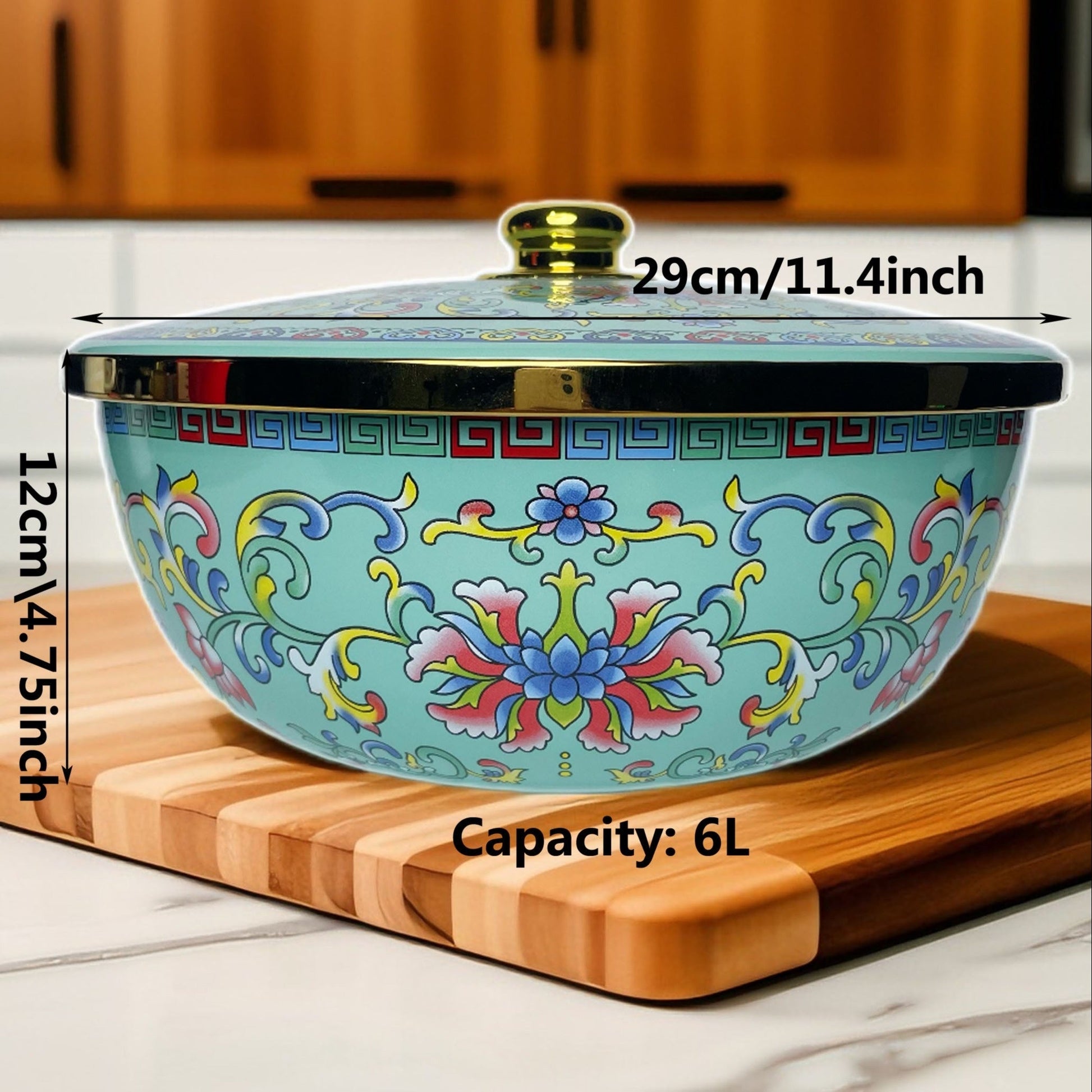 Enamel Mixing Bowl with Lid, Large Salad Basin for Kitchen and Dining