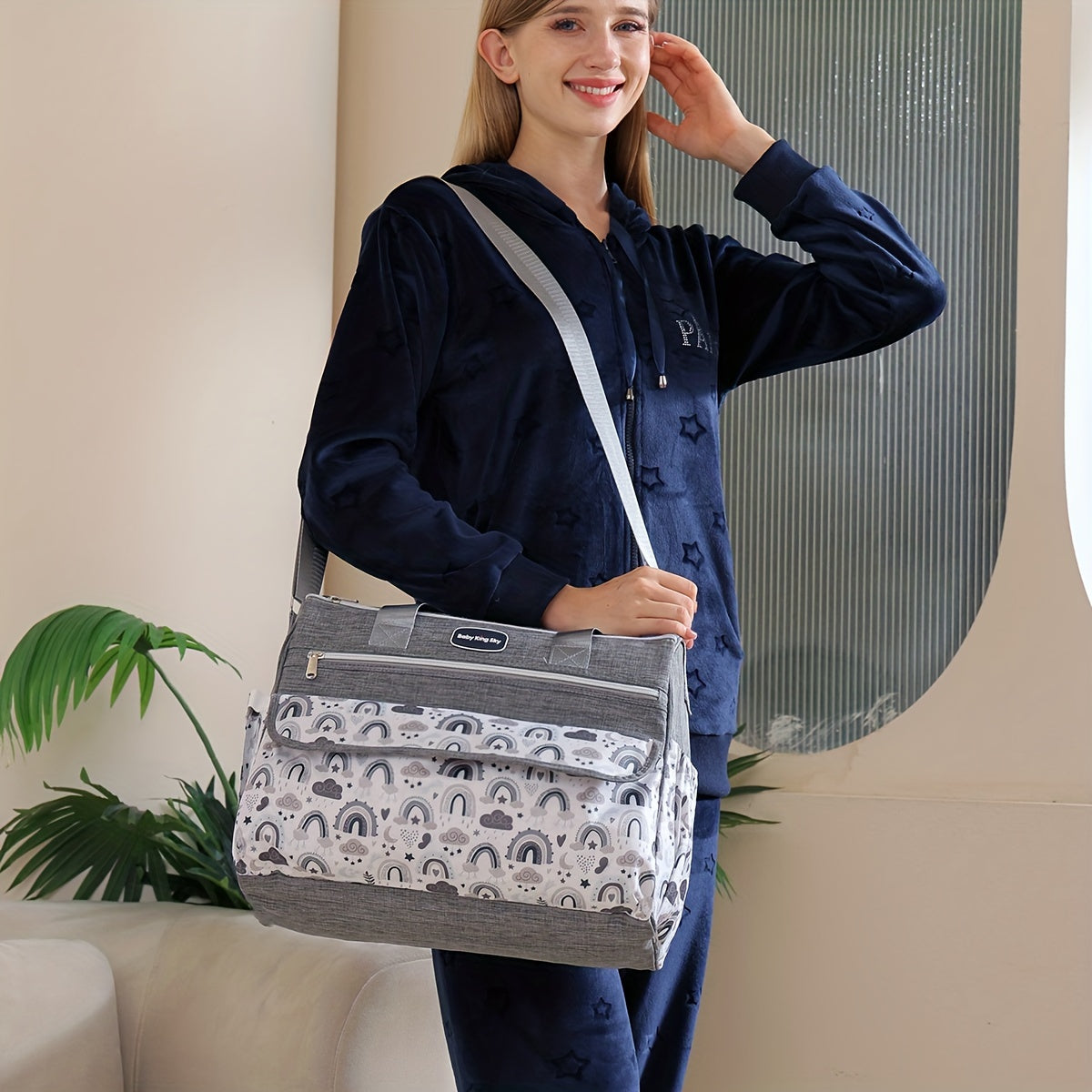 Cloud Print Shoulder Bag for Moms Large Capacity Versatile Crossbody Travel Diaper Bag