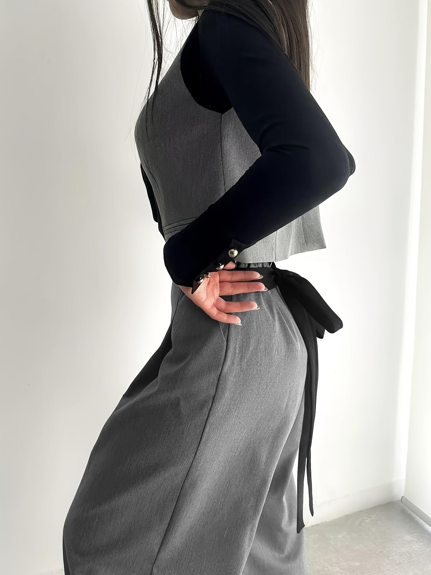 Adult Solid Color Wide Leg Suit with Lace-Up Detail in Polyester