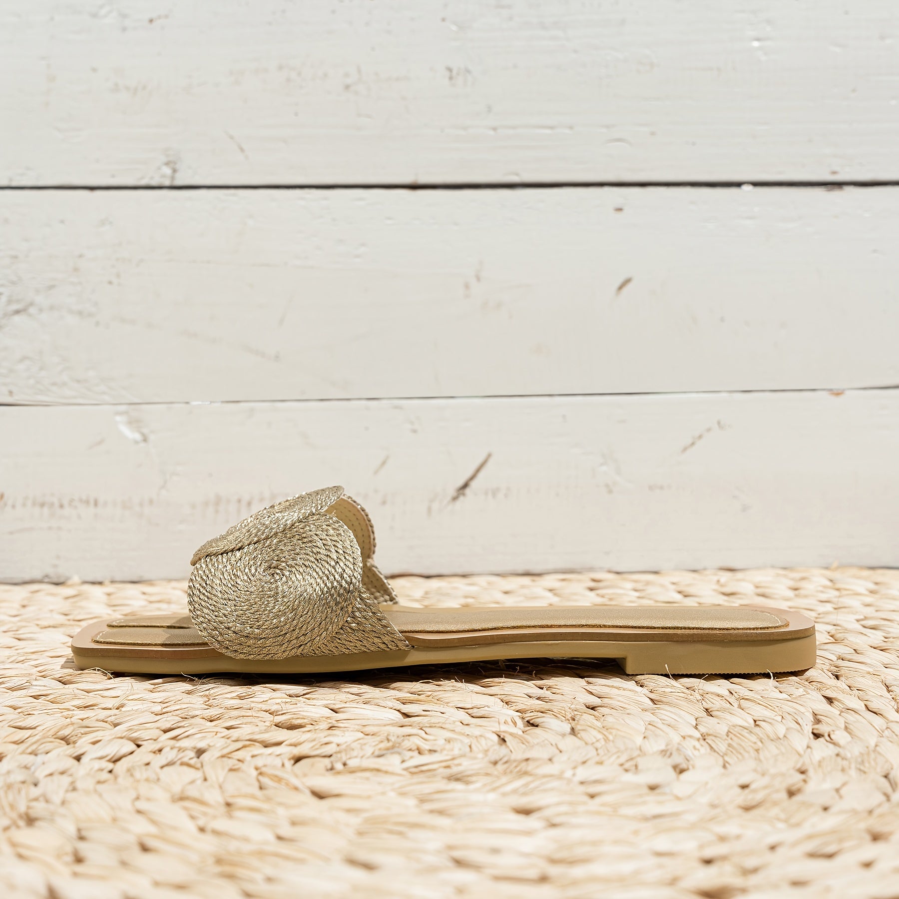 Women's Polka Dot Fabric Slide Sandals Open Toe Flat Heel