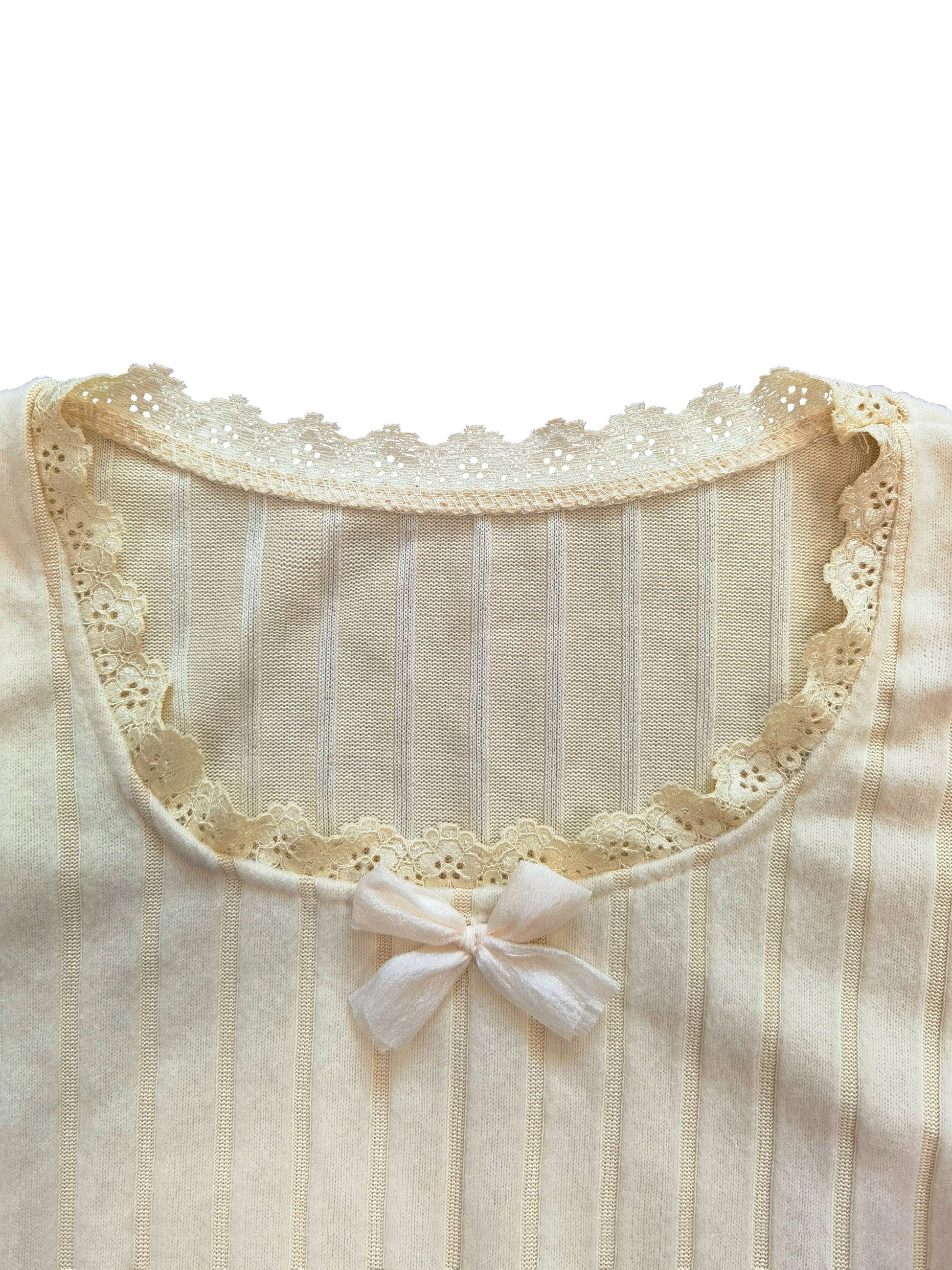 Women's Long Sleeve Ribbed Knit Top with Bow Detail Solid Color Spring Fall