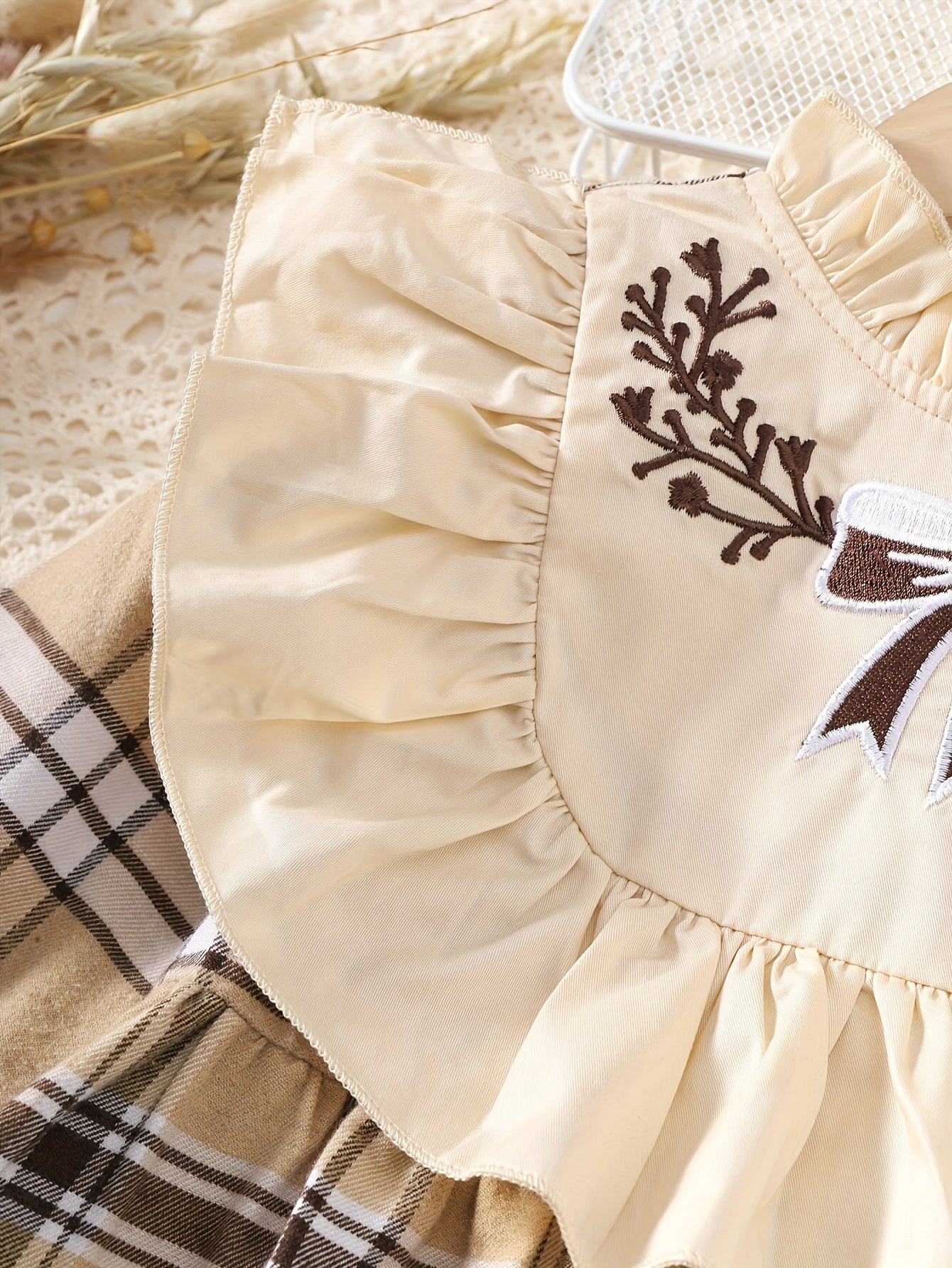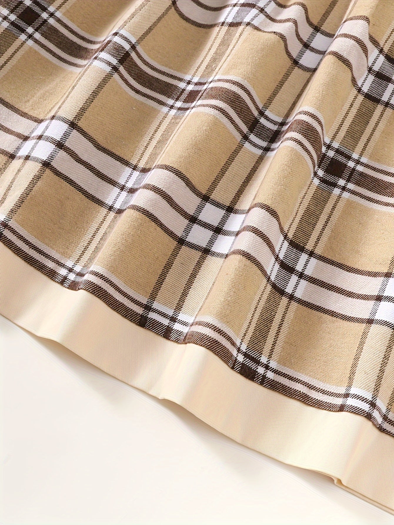 Girls' Plaid Long Sleeve Dress with Ruffle Trim and Matching Hat for Spring and Fall