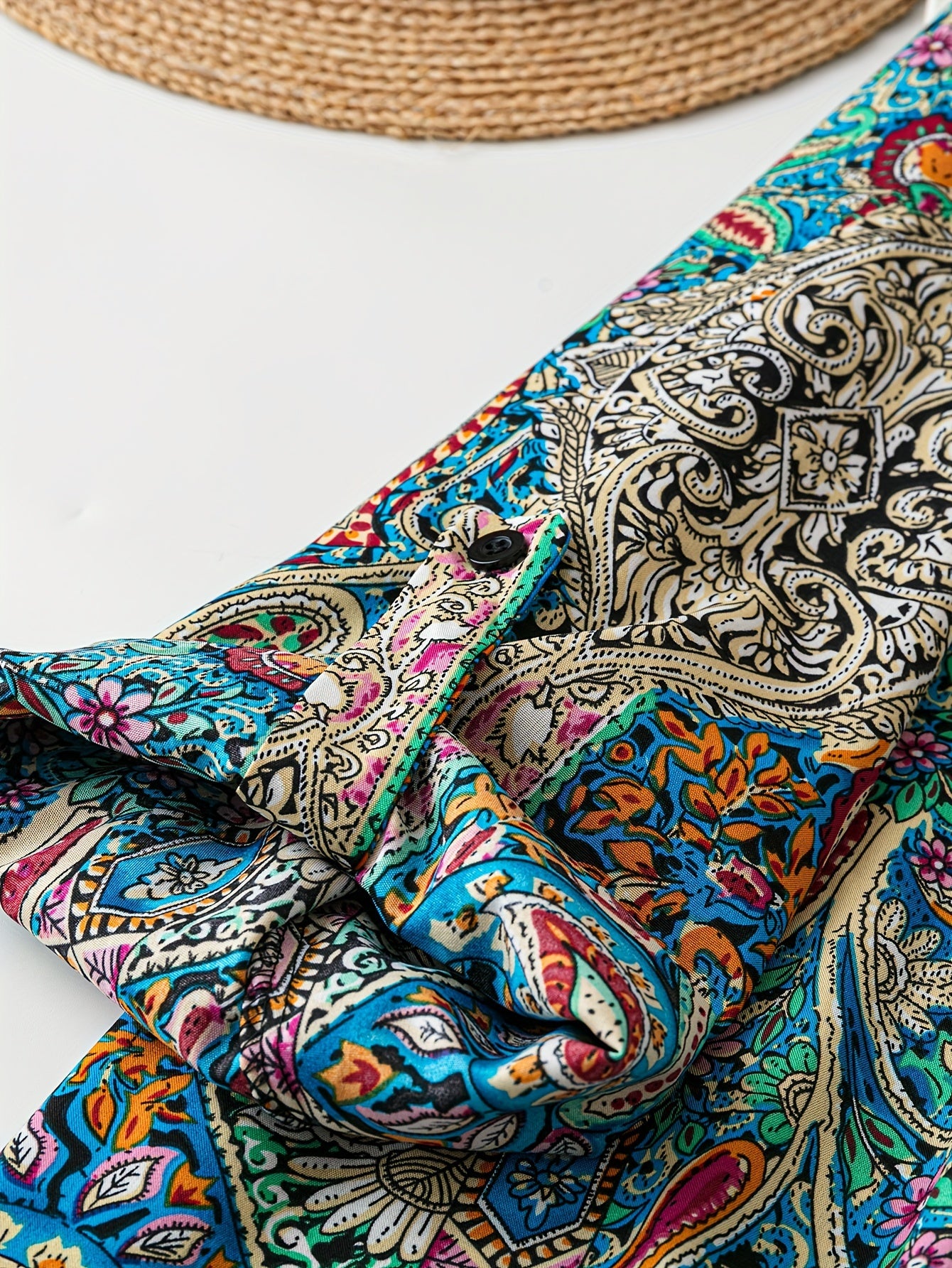 Plus Size Floral Blouse for Women Long Sleeve Button Collar Spring Fall Polyester Stretch
