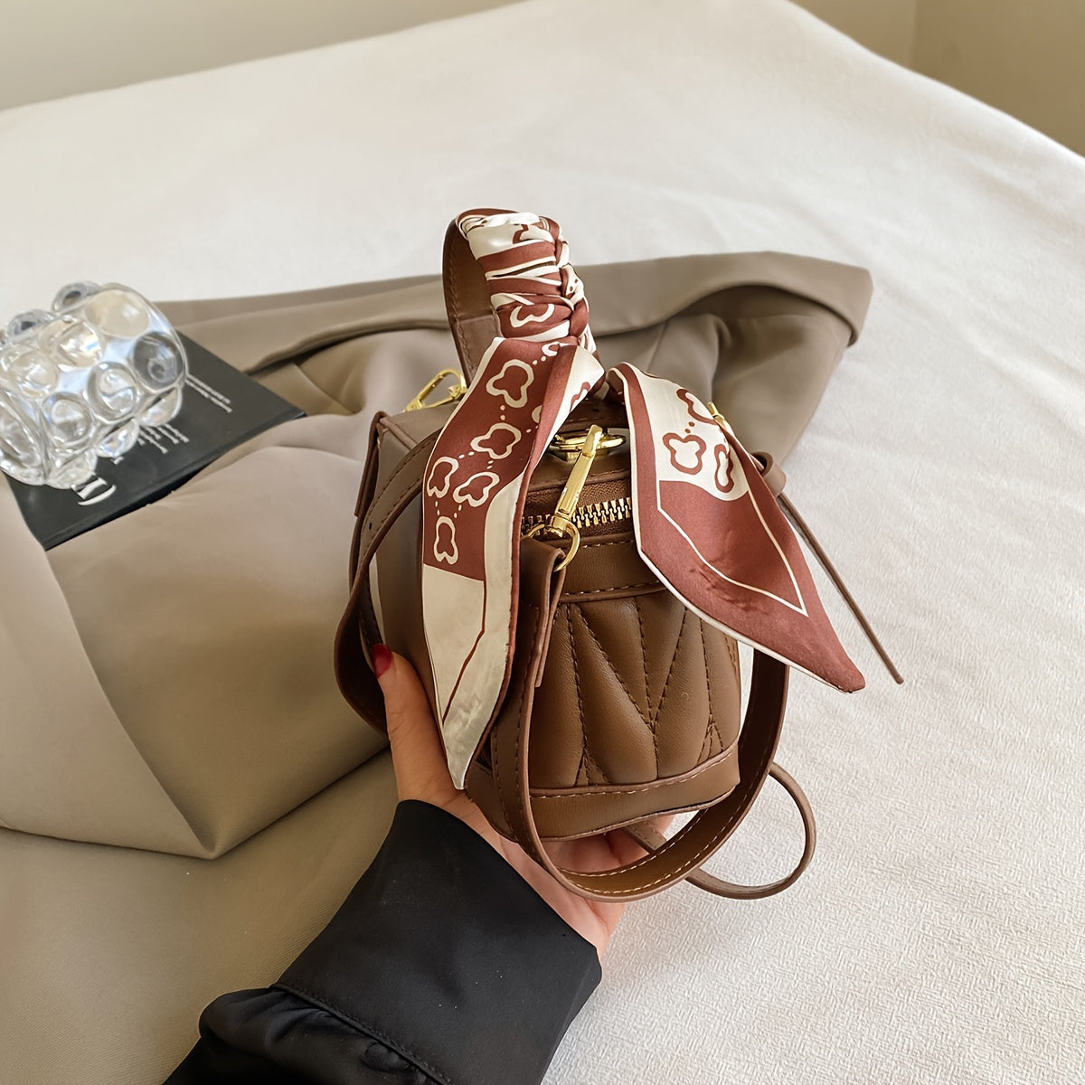 Quilted Box Handbag for Women with Contrast Crossbody Strap Black Coffee PU Embroidered Pattern