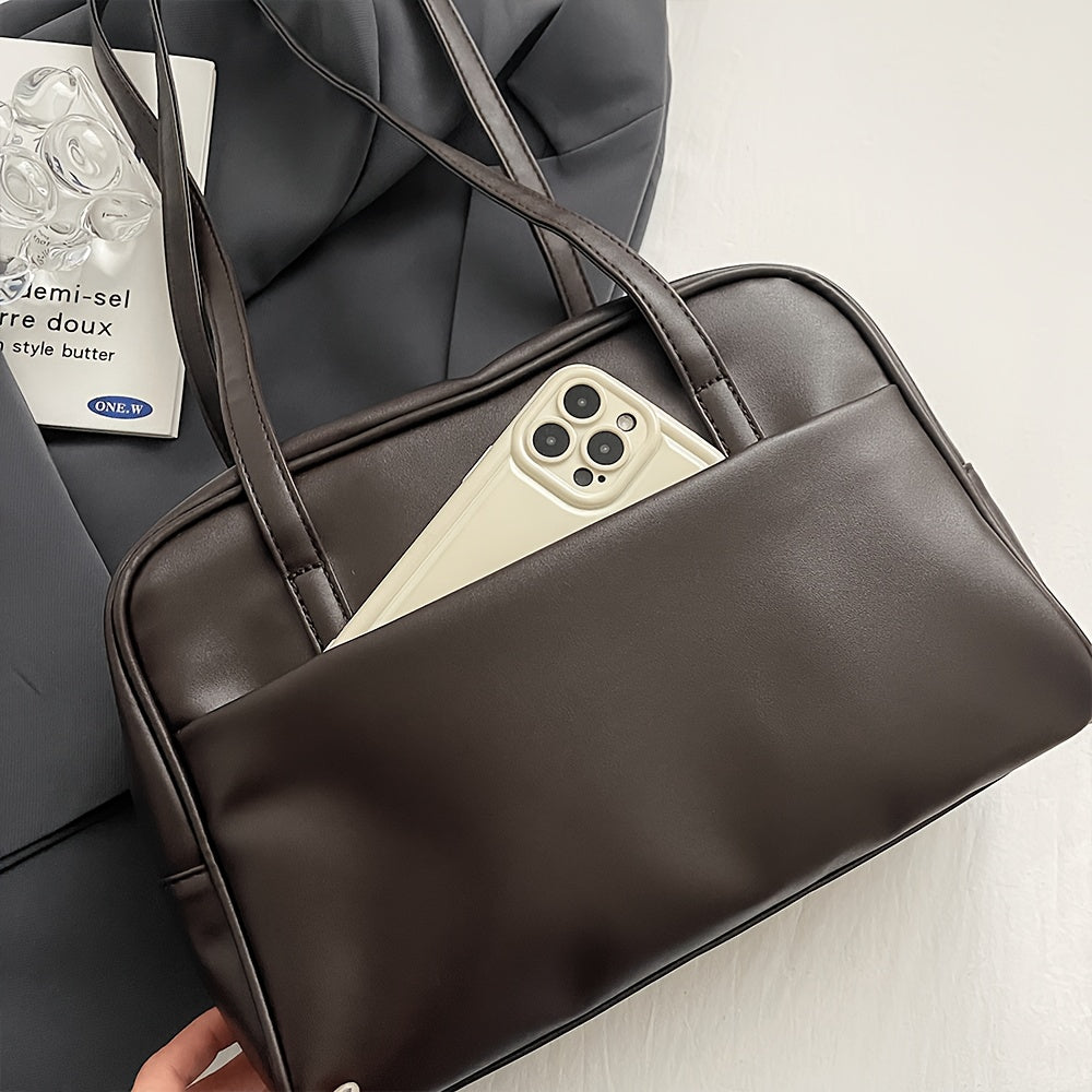 Vintage Black PU Single-Shoulder Bag with Large Capacity for Commuters