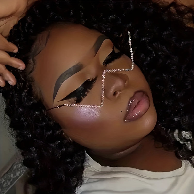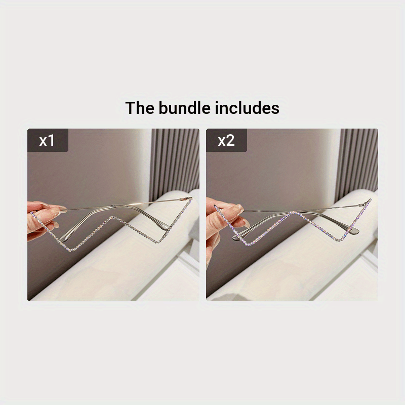 Triangle-Shaped Rhinestone-Embellished Metal Glasses Frame for Fashion Street Style