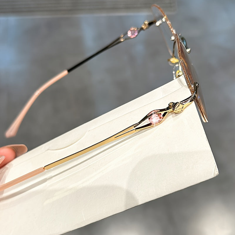Women's Rimless Reading Glasses Blue Light Blocking Gradient Lenses Octagon Shape