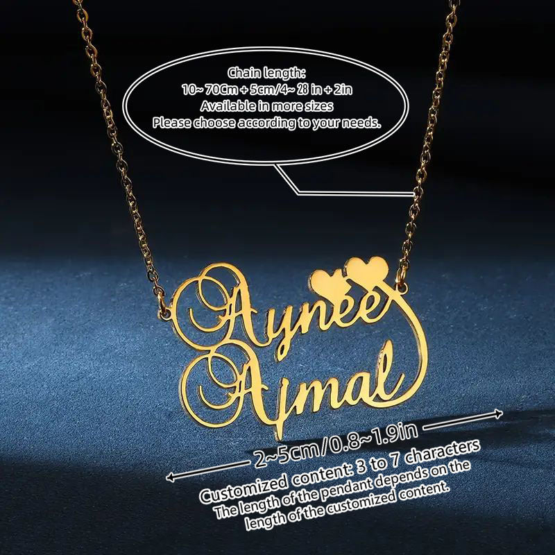 Stainless Steel Couple's Love Jewelry Double Name Pendant Necklace for Women