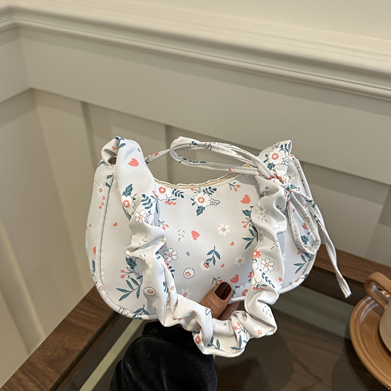 Women's Floral Crossbody Bag Polyester White Pink Zipper Adjustable for Daily Travel