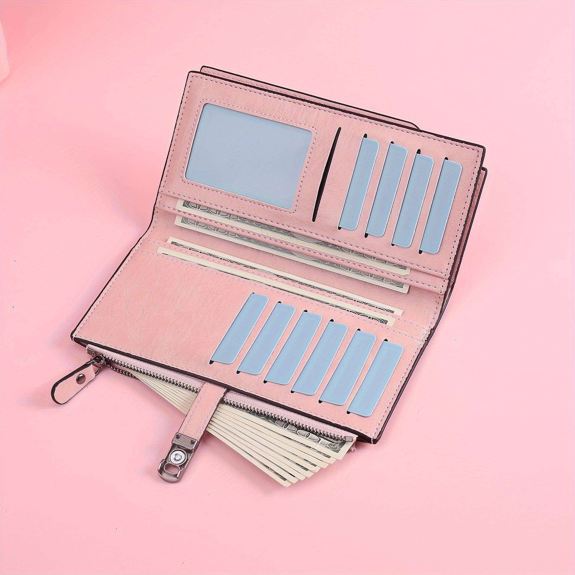 Women's Long Wallet with Buckle Closure Tri-Fold Card Slots Coin Purse Document Wallet