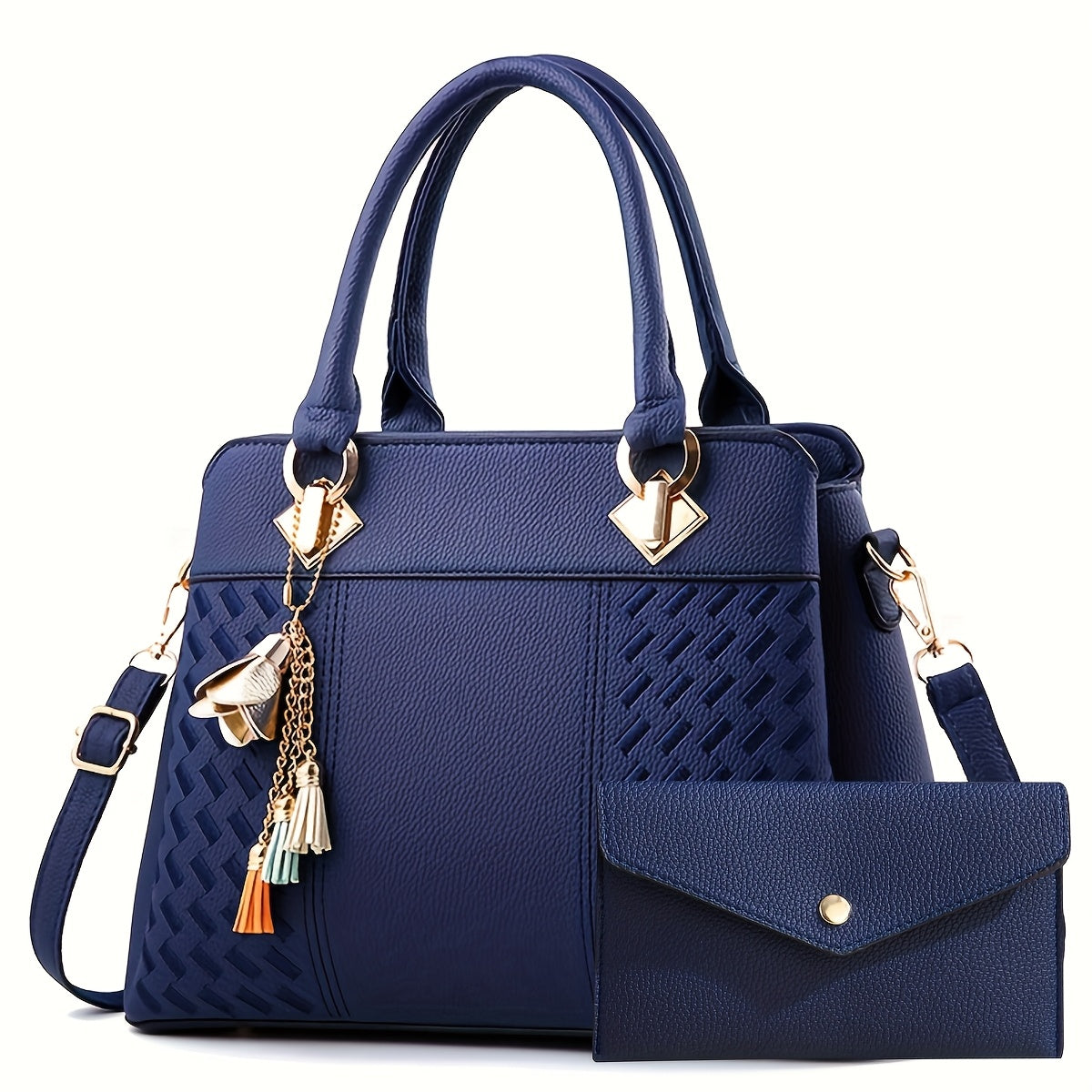 Women's Black Tote Bag Set with Removable Strap Zipper Closure and Polyester Lining