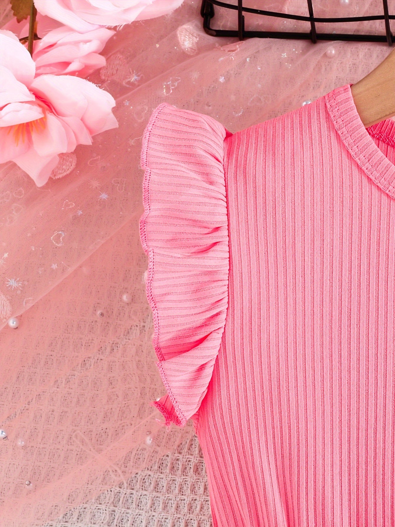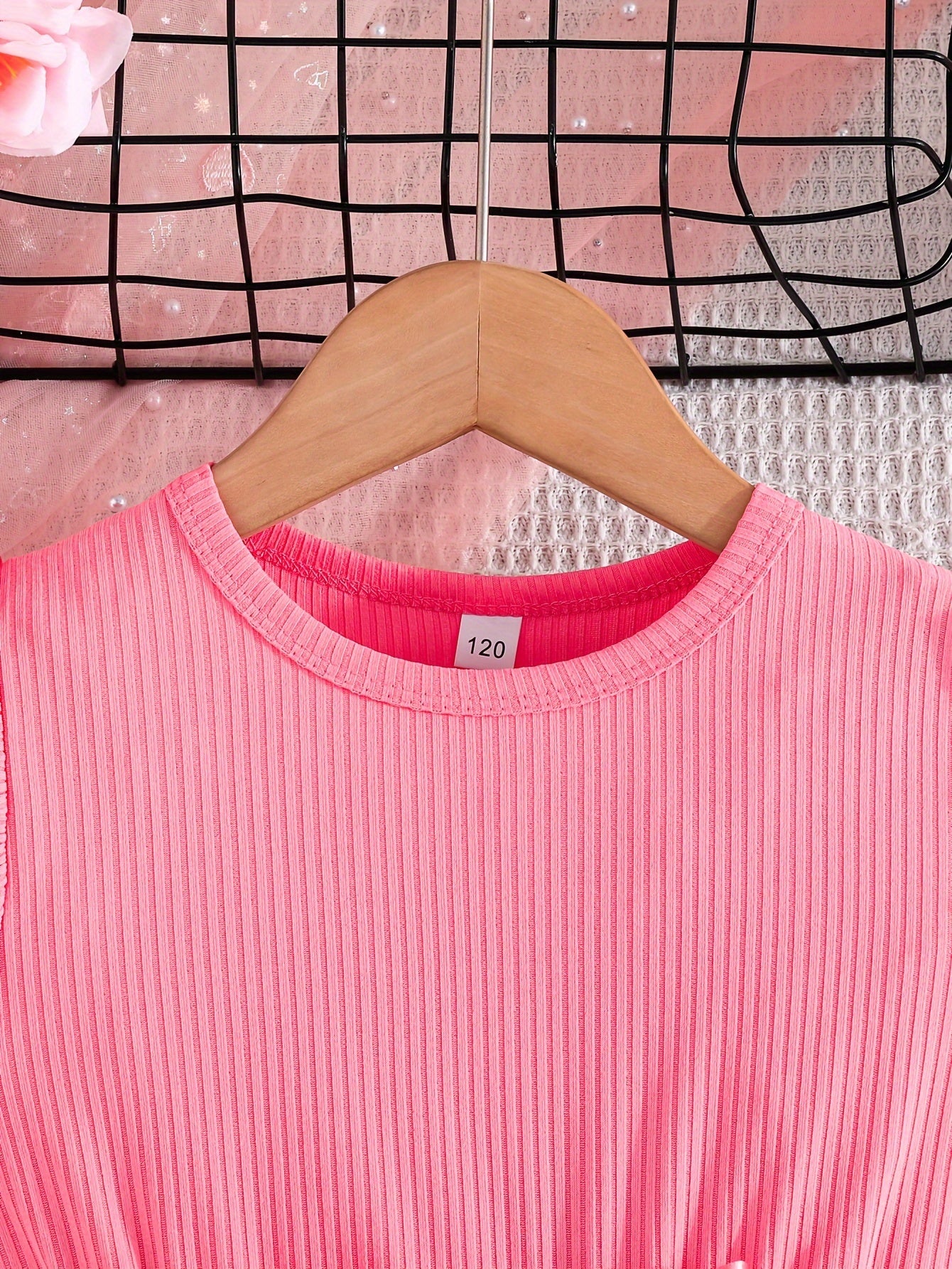 Girls Summer Butterfly Print Midi Dress Set with Belt and Ribbed Sleeves