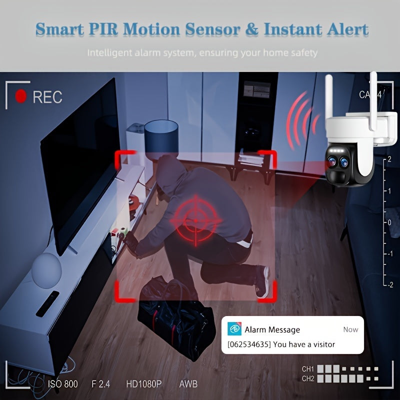 Wireless Outdoor Security Camera with Dual-Lens 8X Zoom 360° Pan-Tilt Night Vision