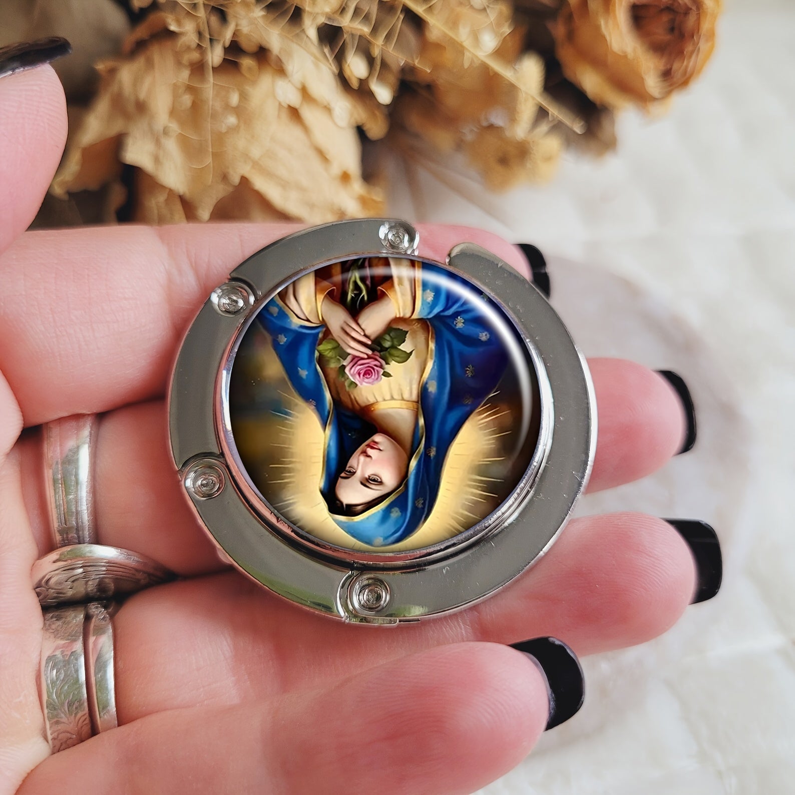 Foldable Handbag Hook for Table Virgin Mary Design Portable Purse Hanger