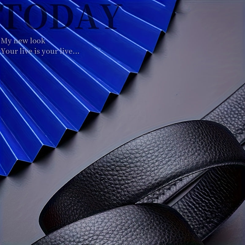 Men's Black Faux Leather Belt with Automatic Buckle for Business Casual
