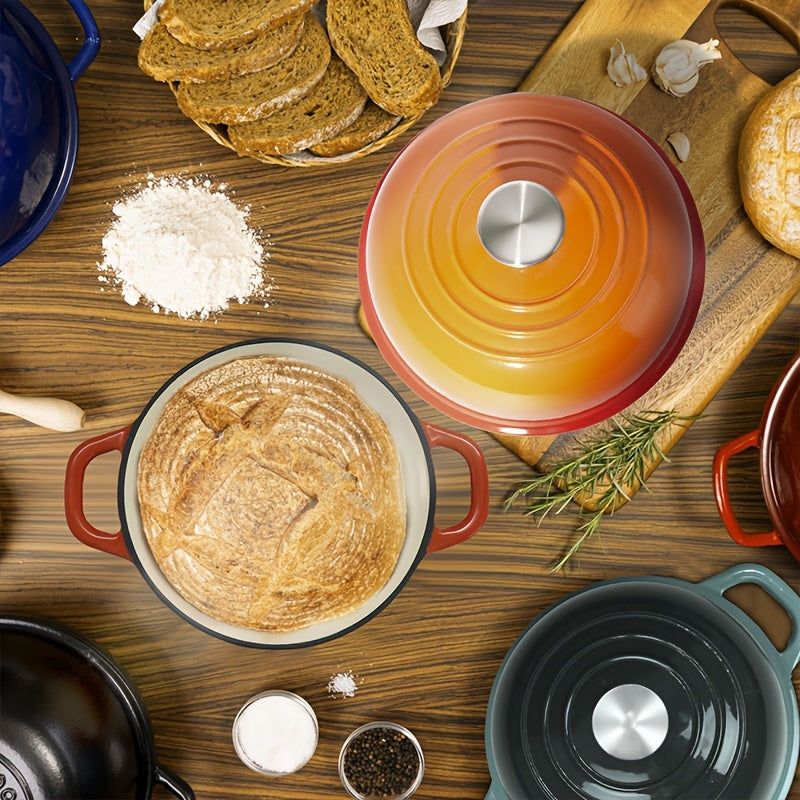 Teal Enameled Cast Iron Dutch Oven 9.5-Inch Round Bread Baking Pot